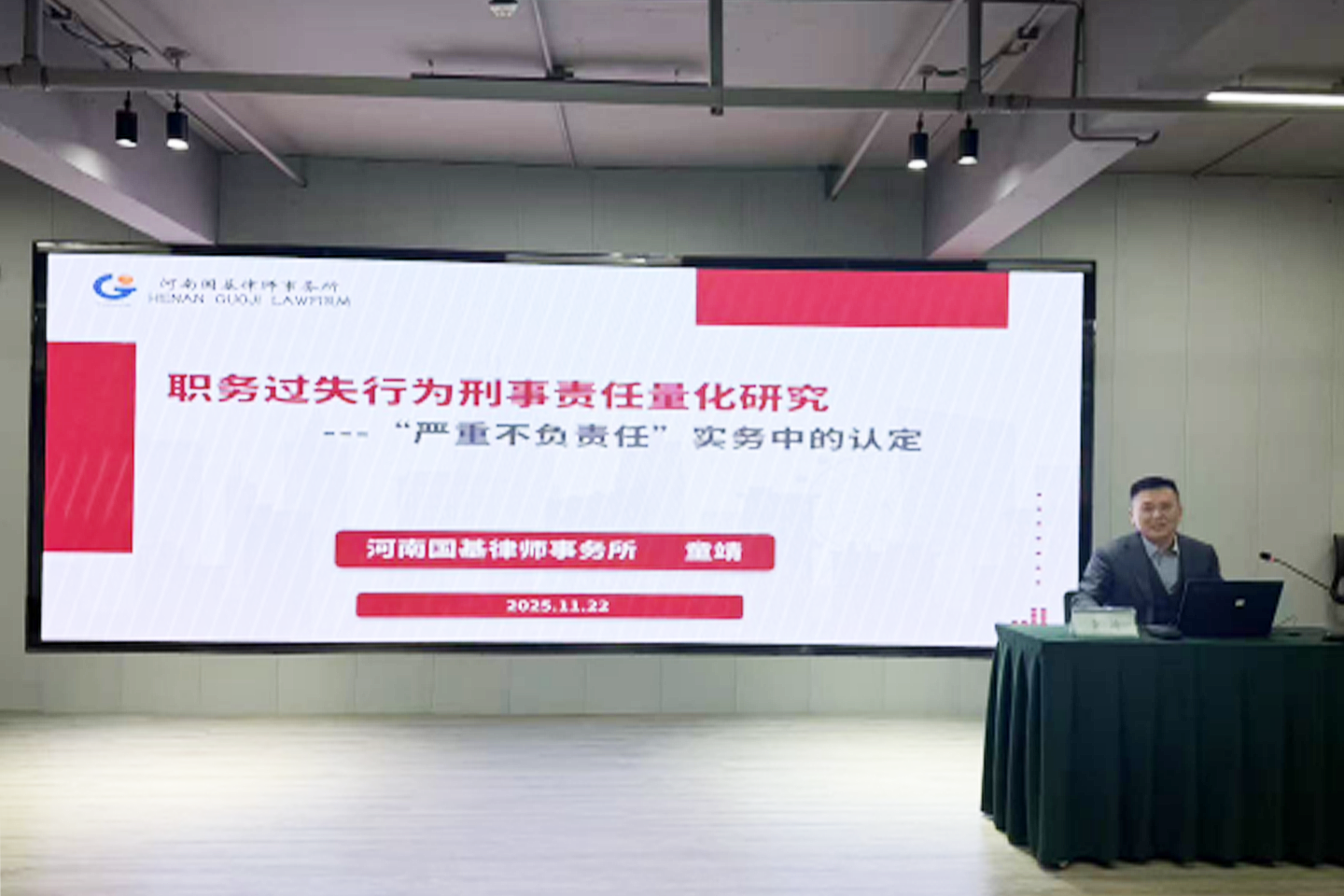20、11月22日,郑州市律师协会郑东新区律工委举办“职务过失行为刑事责任量化研究”专题研讨会。河南国基律师事务所高级合伙人、副主任童靖作为与谈嘉宾参会,结合一起公安干警涉嫌玩忽职守的典型案例,分享了职务过失犯罪案件的辩护策略,为与会人员提供了理论与实践参考。