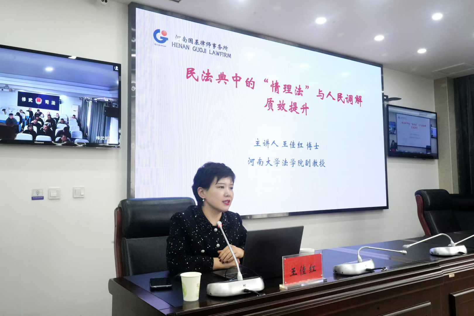 22、11月26日,河南国基律师事务所企业合规部主任王佳红博士应焦作市司法局邀请,为全市司法行政相关部门负责人和人民调解员骨干作《民法典中的“情理法”与人民调解质效提升》专题讲座。