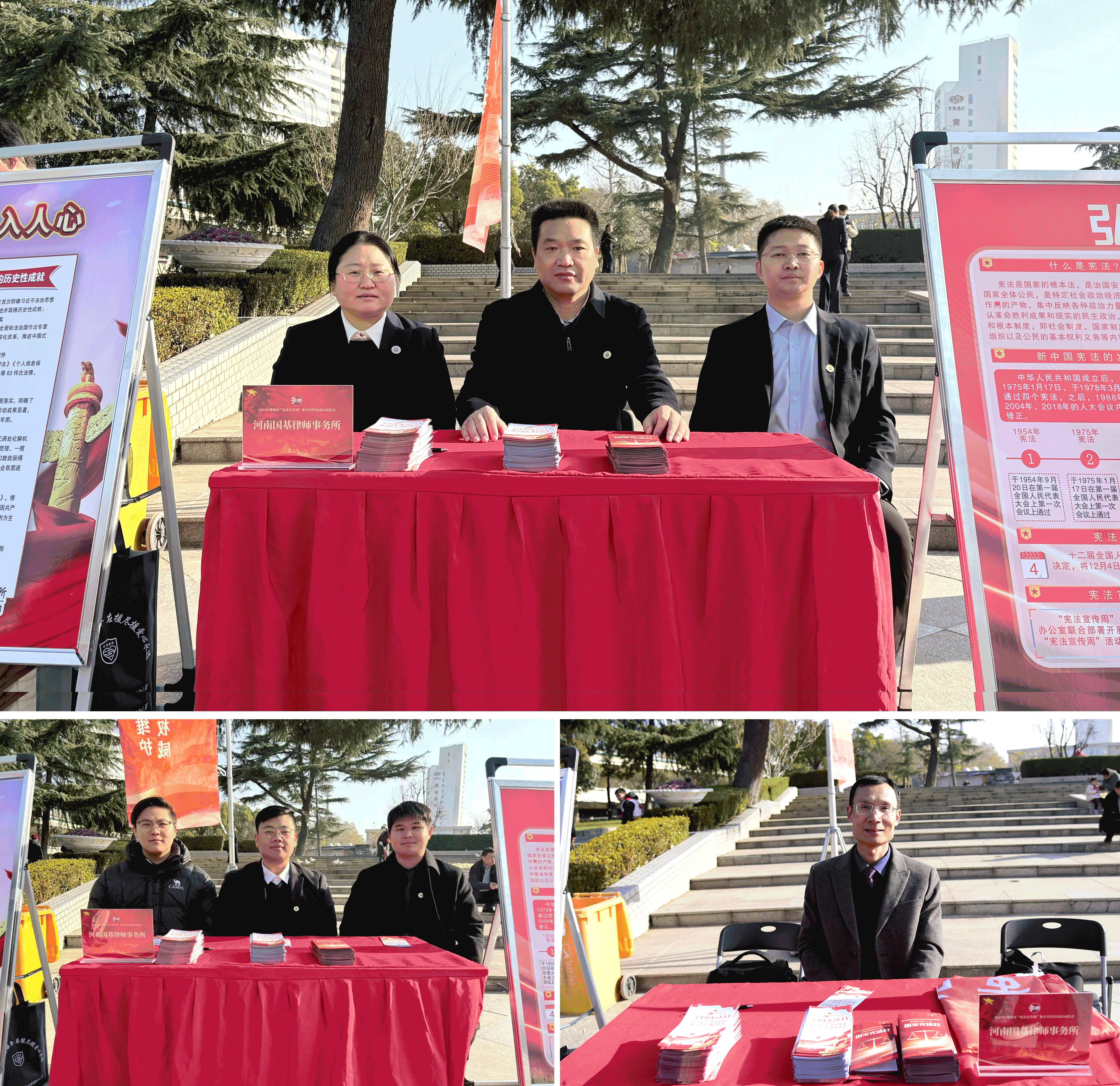 为深入贯彻党的二十届四中全会精神,加强宪法学习宣传,让法治精神深入人心,12月2日,在第十二个国家宪法日来临之际,河南国基律师事务所组织胡大宽、许水征、喻濛、王政翔四位律师前往郑州市紫荆山公园,参加由郑州市人大常委会、市司法局与市律师协会联合主办的“宪法宣传周”活动。活动现场,律师们围绕宪法中群众关心的法律问题提供专业咨询,以专业力量传递法治温度,让宪法精神融入群众日常生活。