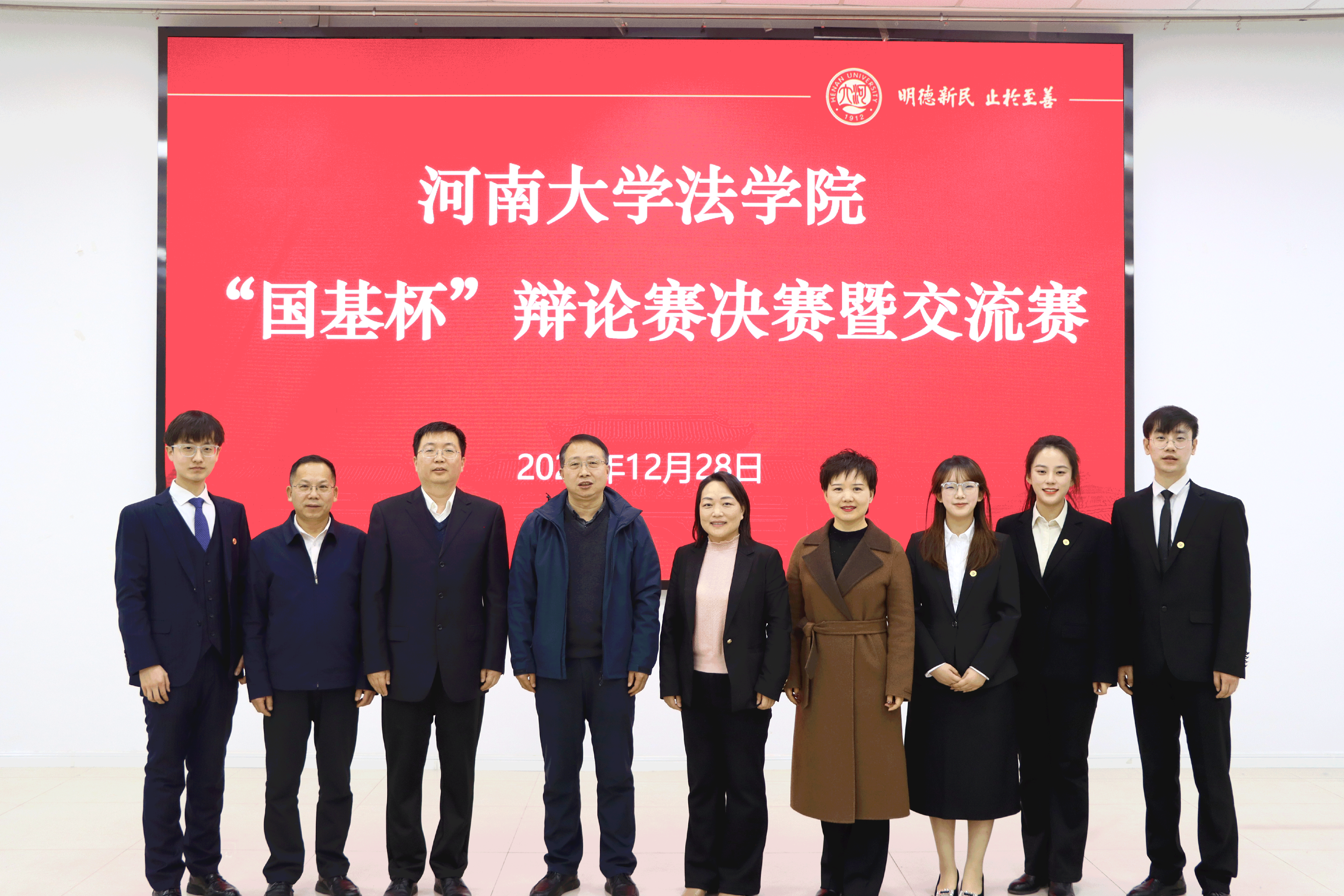 24、12月28日,河南国基律师事务所应邀赴河南大学法学院参加第六届“国基杯”法律人职业风采大赛颁奖典礼。律所胡大宽、付钦斌、张书惠、岳亮、王佳红律师参加并为荣获“国基杯”法律文书写作大赛一、二、三等奖的26位学生颁奖;律所青年律师与河大法学院学子围绕“自媒体时代,我们离案件真相更近还是更远”展开辩论交流。经激烈交锋,律所代表队获胜,青年律师陟蕊、任健、潘英明、王璐瑶获得“优秀辩手”荣誉证书。
