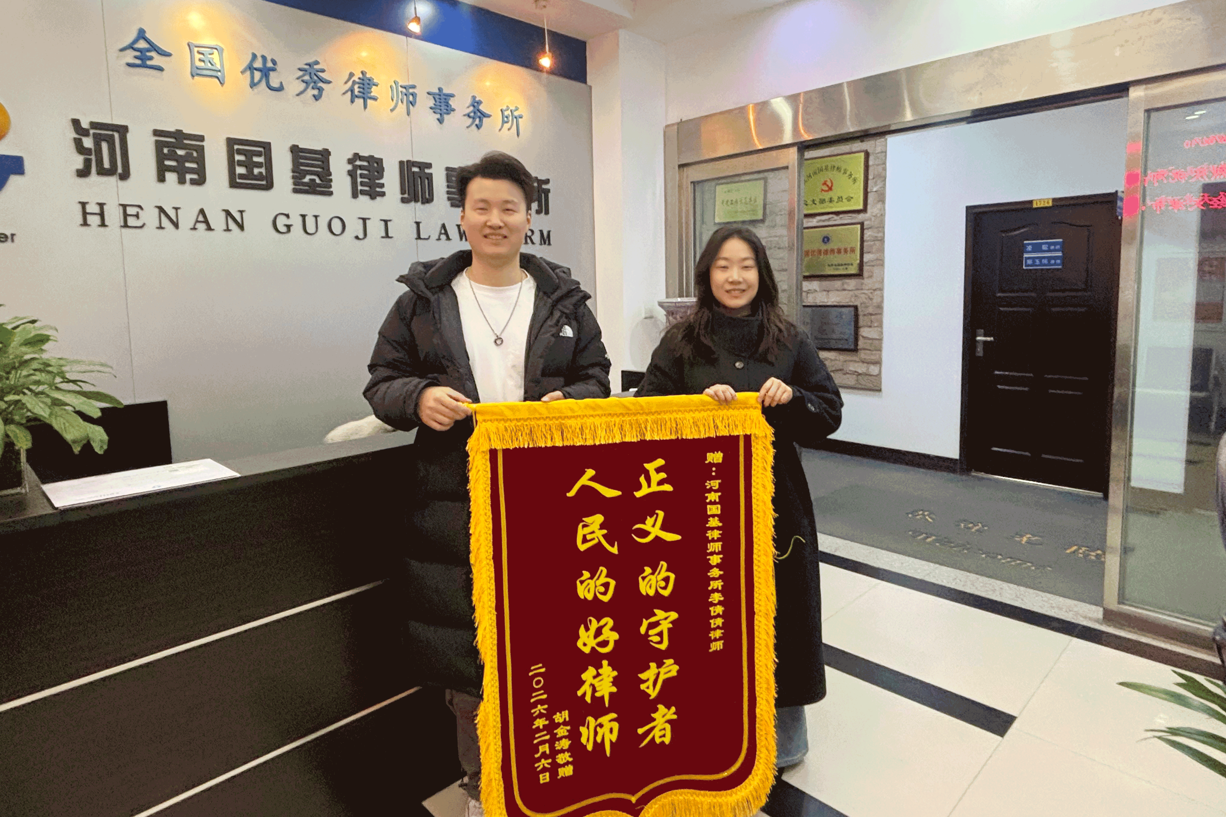 6、2月11日,河南国基律师事务所刑事二部李倩倩律师收到当事人赠送的锦旗。李律师办理的一起职工上下班途中交通事故工伤赔偿案,当事人面临肇事方赔偿与工伤待遇双重维权。李律师梳理案情、固定关键证据,多次沟通释法,最终促成用人单位支付一次性伤残就业补助金,办理工伤保险申报,切实维护了当事人合法权益。
