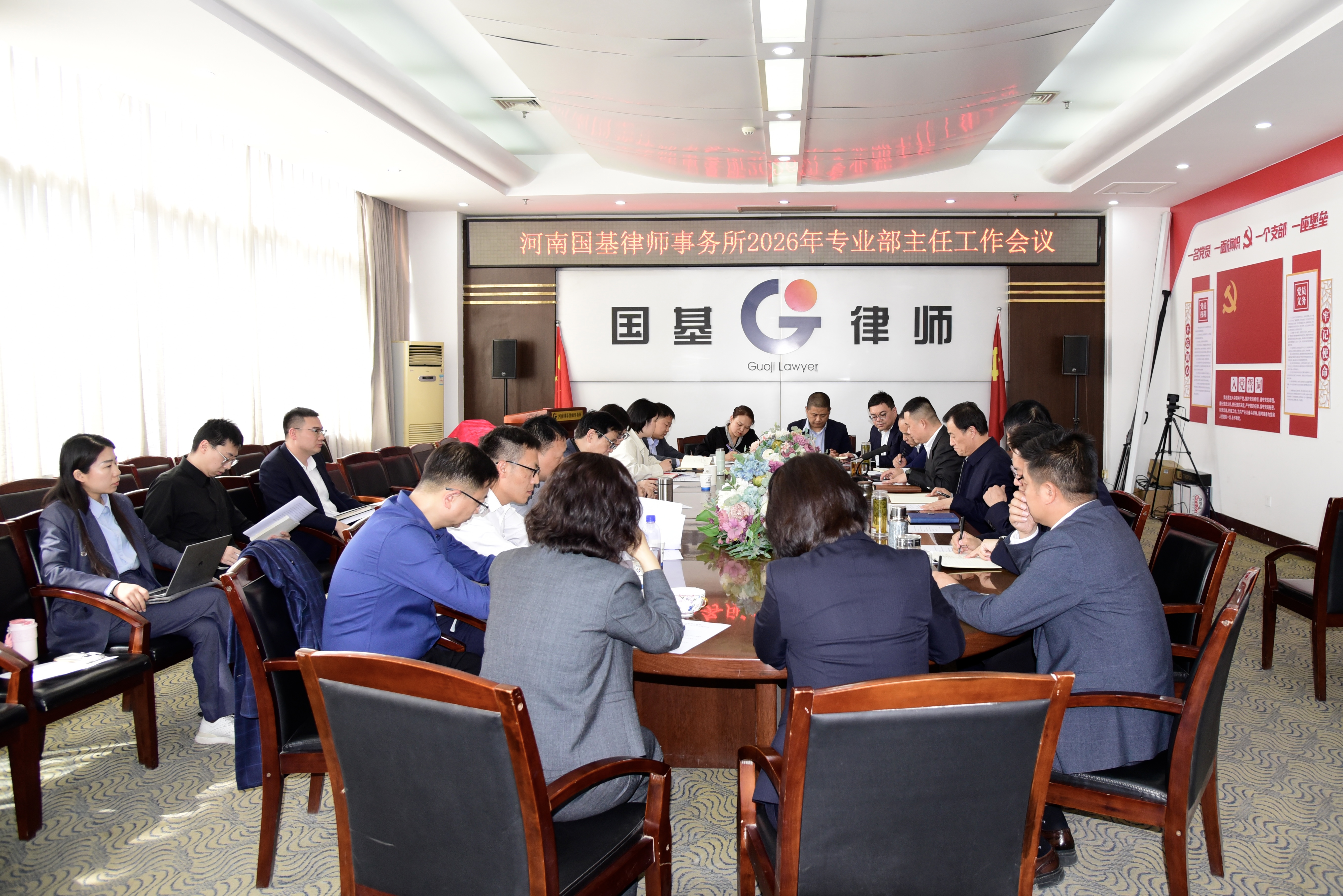 4、4月10日,河南国基律师事务所召开2026年专业部主任工作会议。会上,部分专业部负责人对履职情况进行述职,总结工作,查找不足,规划未来。高级合伙人、副主任周国栋对专业部工作进行总结,对今后工作作出安排。各专业部负责人围绕律所工作提出意见建议,现场签订2026年度工作目标责任书。最后李晴川主任作会议总结。