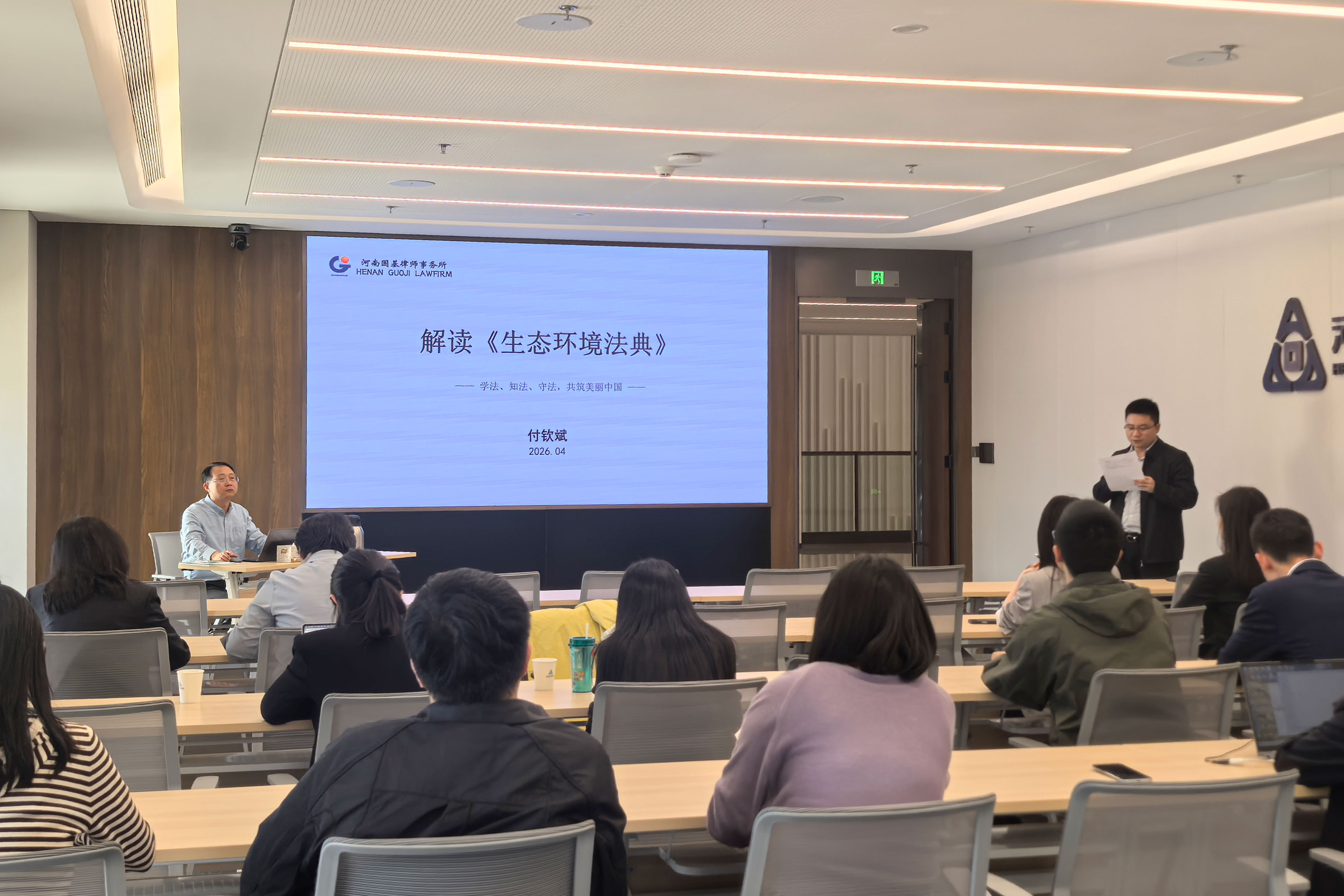 6、4月10日,河南国基律师事务所刑事二部主任付钦斌律师,应邀赴河南投资集团有限公司,为集团总部、各专业平台公司合规人员作《生态环境法典》专题讲座。付律师结合自身法律实务经验,从立法目的、编纂模式、主要内容、核心亮点及重大意义五大维度进行系统解读,线上线下100余人参加学习。