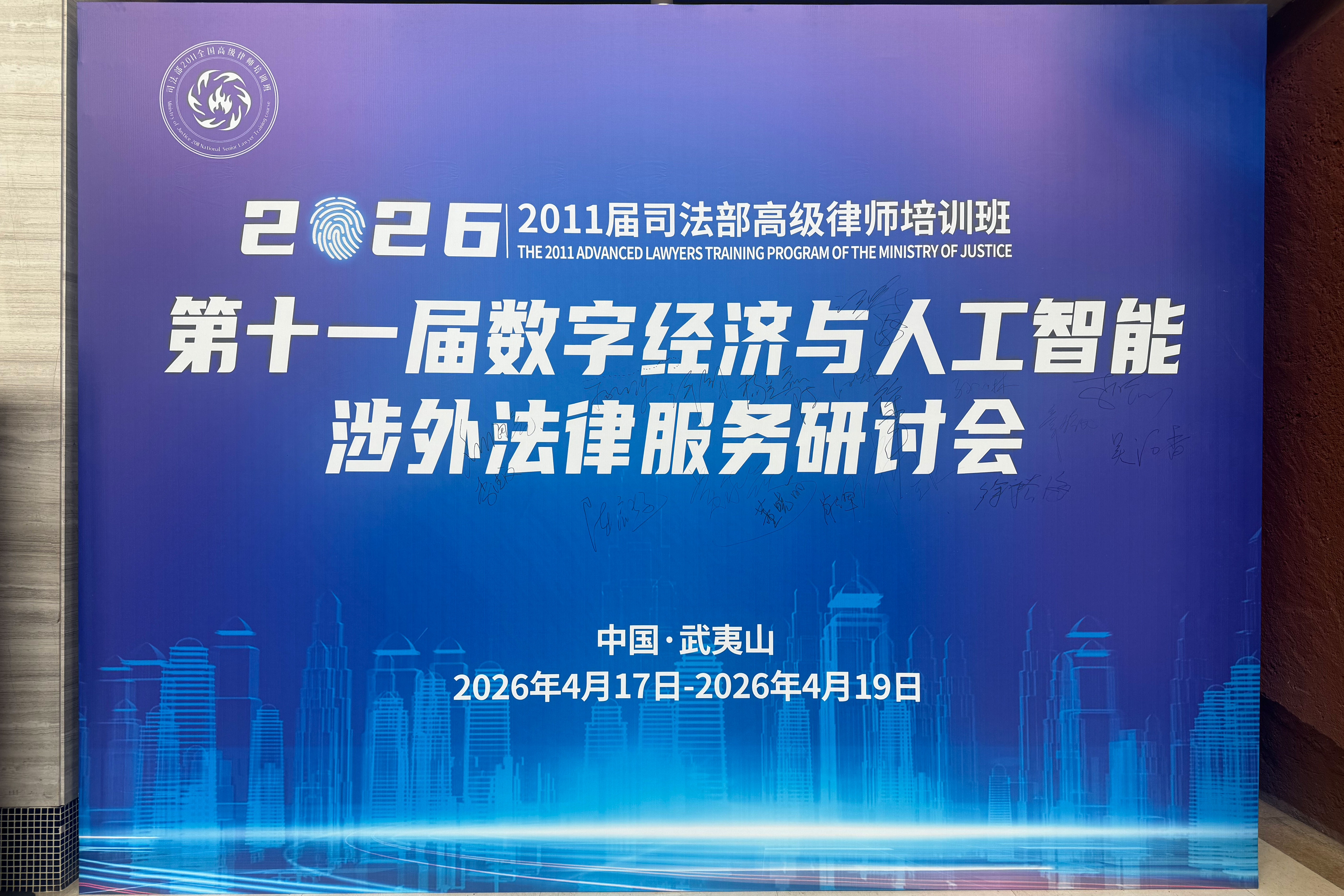 11、4月17日—19日,2011司法部全国高级律师培训班“数字经济与人工智能涉外法律服务研讨会”在福建武夷山举行,河南国基律师事务所主任李晴川参加会议。