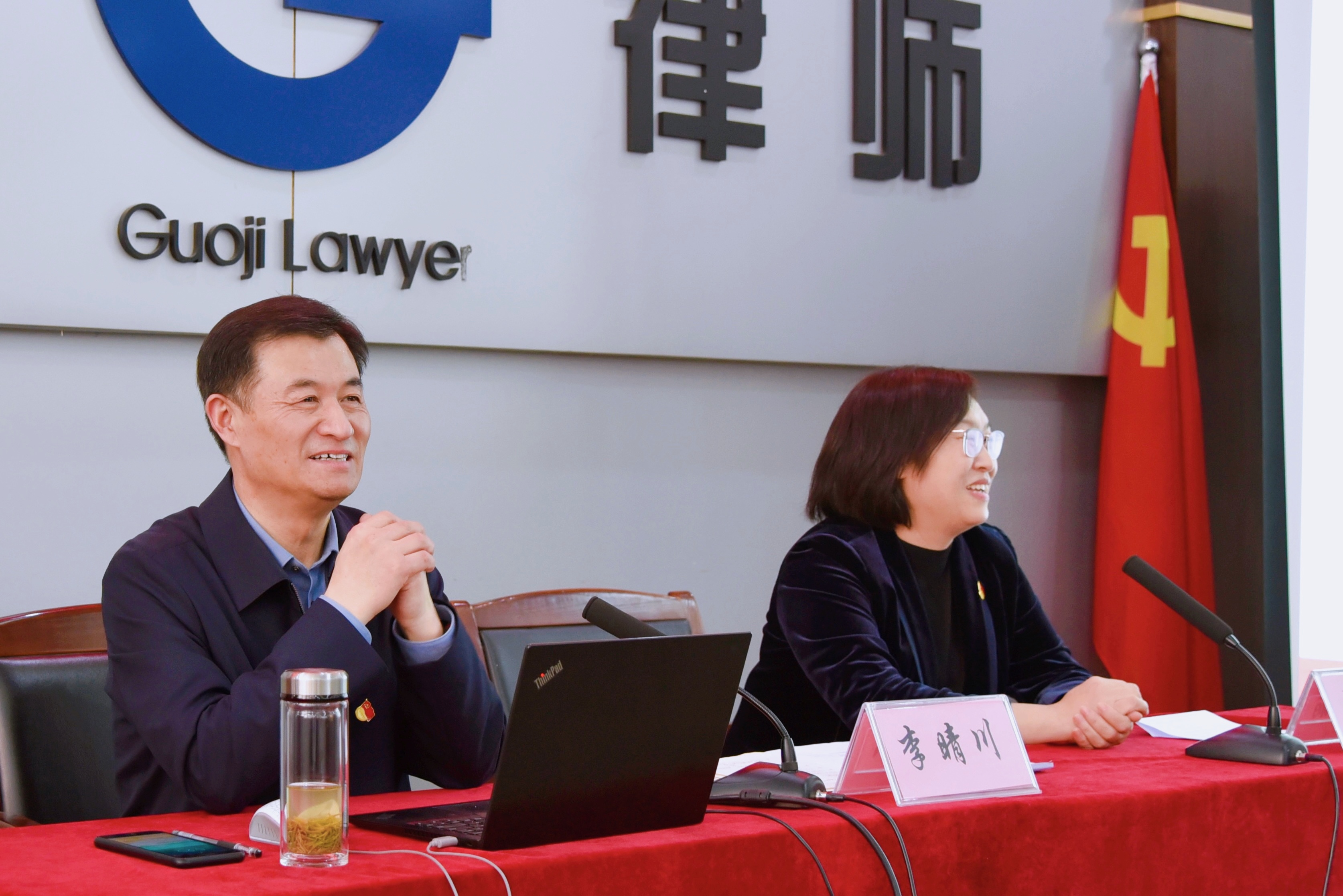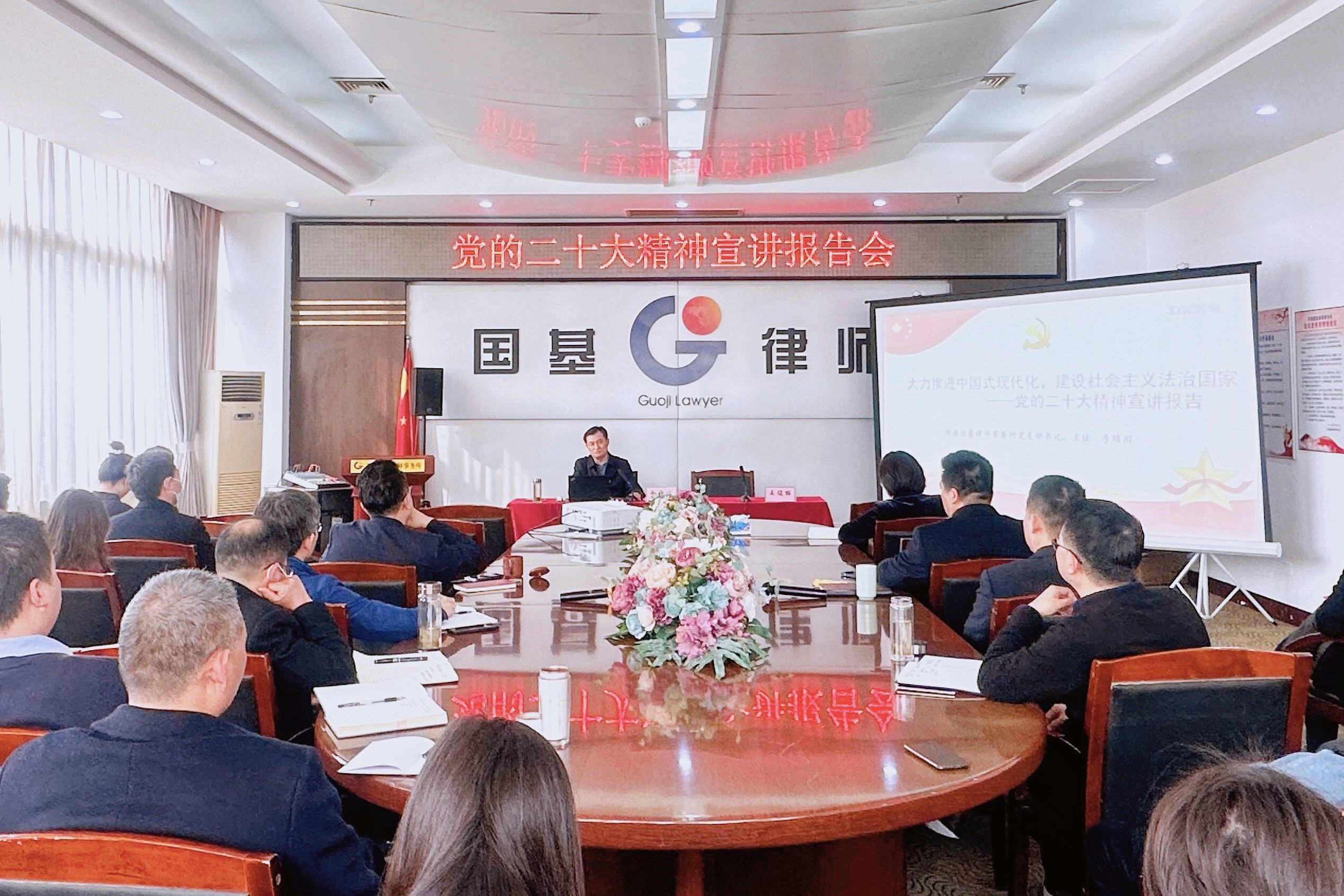 为学习贯彻党的二十大精神,进一步加强律所党建工作,2023年2月17日下午,河南国基律师事务所党支部、河南国基(北京)律师事务所党支部在总所党员活动室联合开展“支部书记讲党课”主题活动。国基所党支部书记、主任李晴川、北京分所主任王俊丽、北京分所党支部书记杜强,国基所总所党员律师、北京分所党员律师以及民主党派人士、入党积极分子、部分律师等约100人参加本次活动。省政协委员、总所党支部书记、主任李晴川以《大力推进中国式现代化,建设社会主义法治国家——党的二十大精神宣讲报告》为题向与会人员做主题宣讲。本次活动由北京分所主任王俊丽主持。