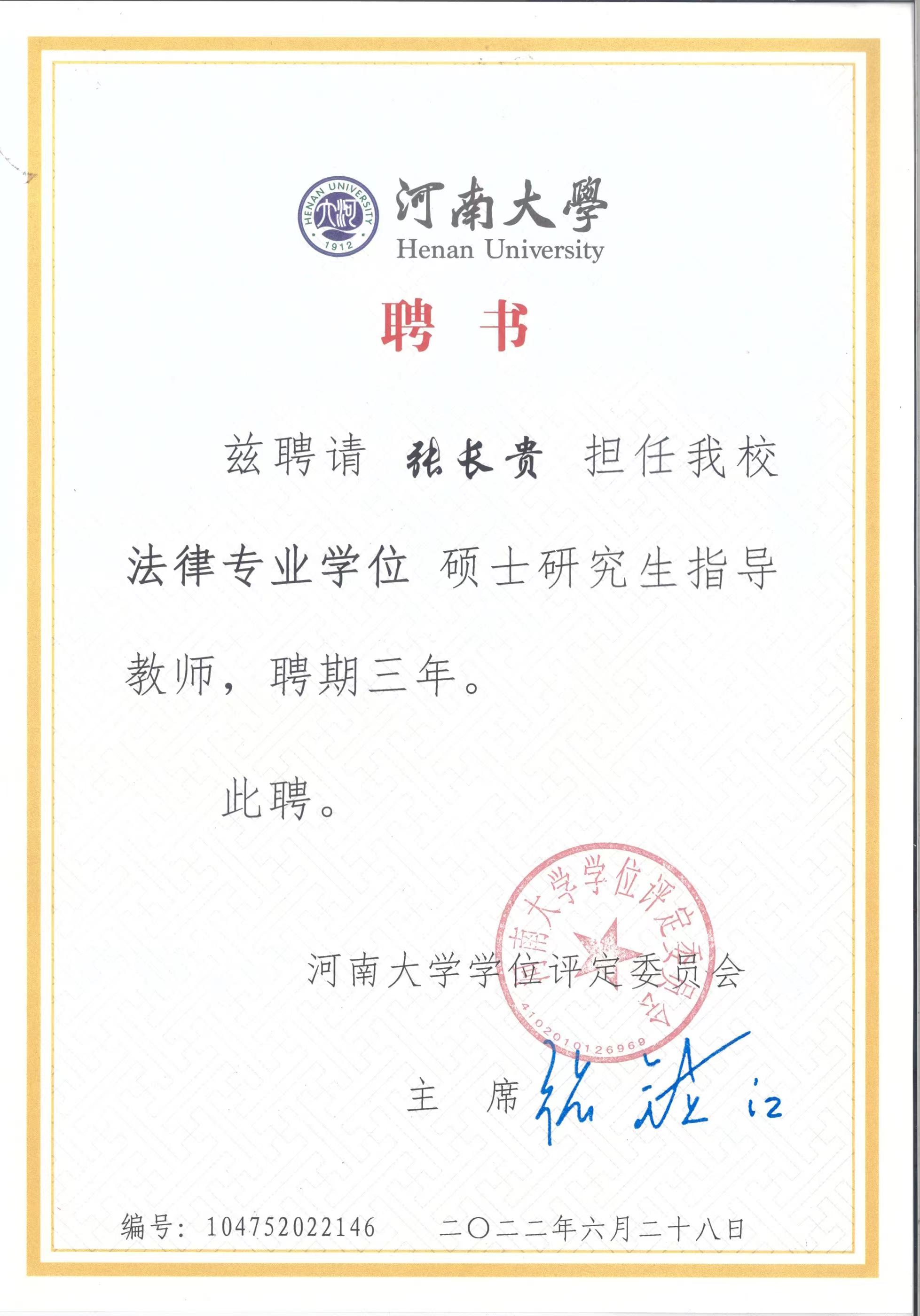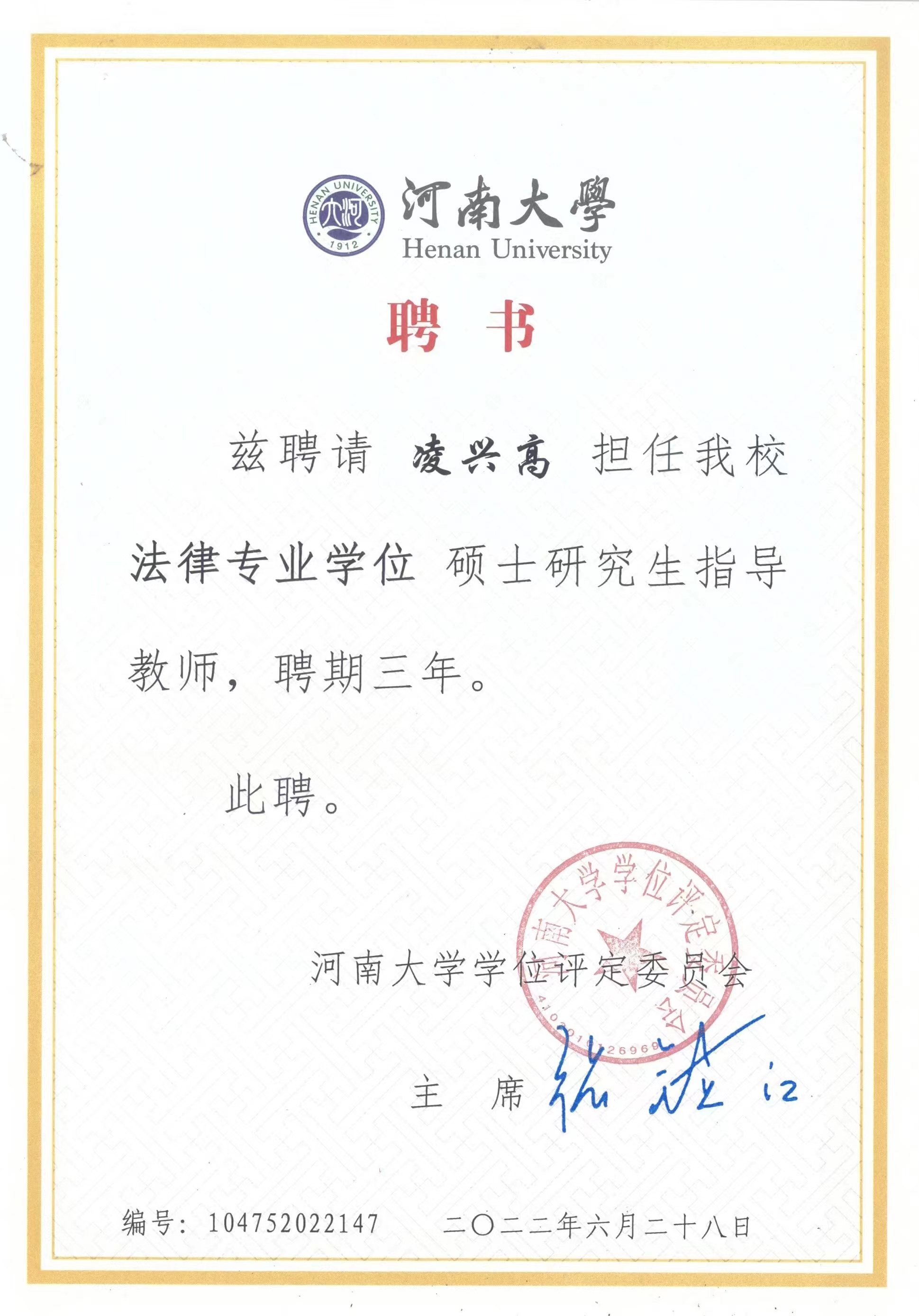 日前,河南大学发布了《关于河南大学2022年硕士研究生指导教师遴选结果的公示》。河南国基律师事务所合伙人、金融法律事务部主任张长贵律师,建筑与房地产法律事务部主任凌兴高律师被河南大学聘任为法律专业学位硕士研究生指导教师。