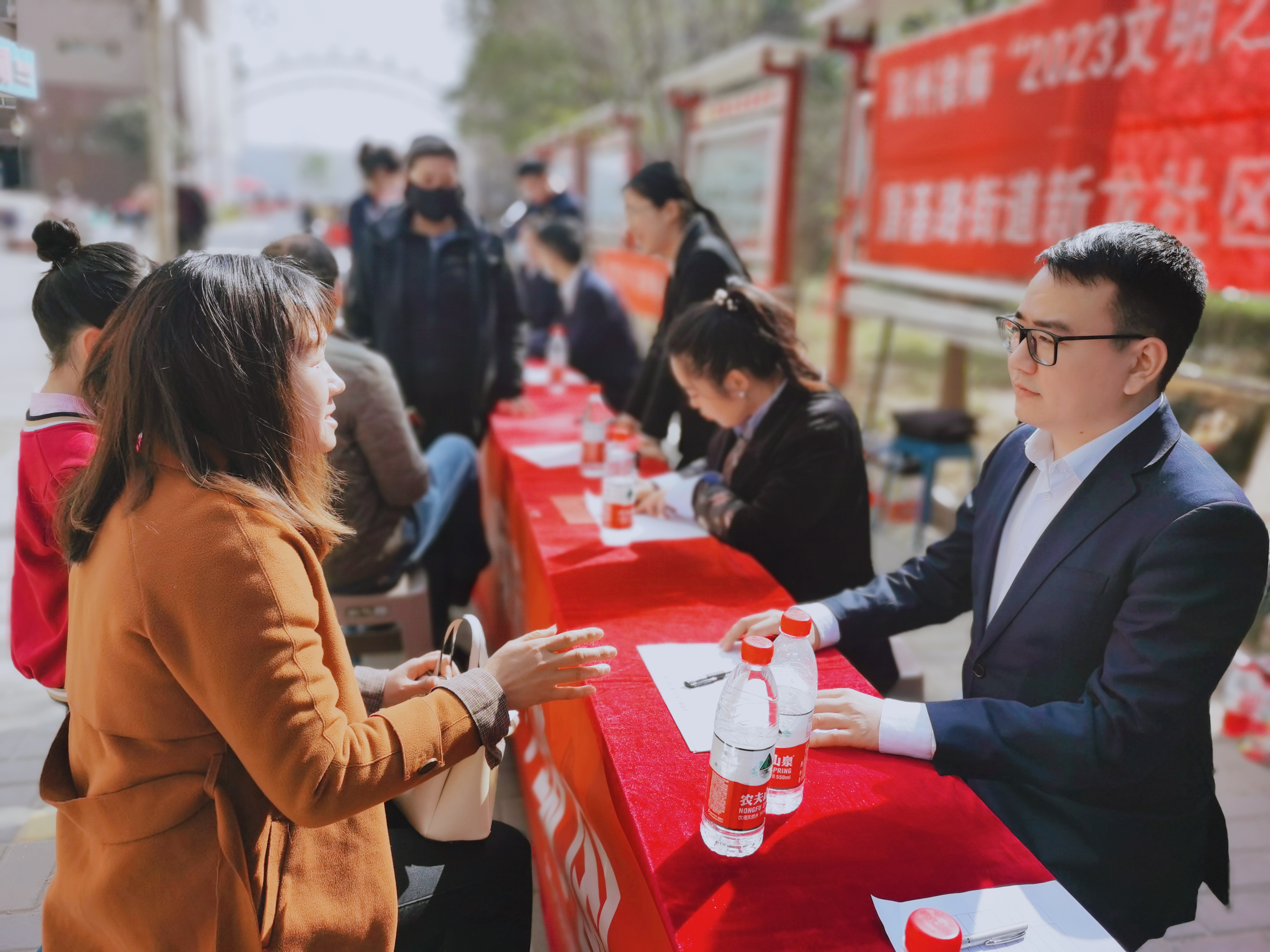 活动现场通过设立法律咨询台、散发热点问题普法宣传单、提供法律引导、现场答疑解惑等形式,为社区居民开展法律咨询服务。律师们运用自身专业知识,耐心倾听人民群众生产生活中遇到的法律问题,引导群众自觉尊法学法守法用法,增强安全防范意识;耐心倾听群众诉求,提供一对一的法律服务,从专业的角度对老百姓关心的婚姻家庭纠纷、遗产继承纠纷、民间借贷、债务纠纷、社区纠纷、邻里纠纷和房产纠纷等问题进行答疑解惑,引导人民群众增强法律意识和维权意识。
