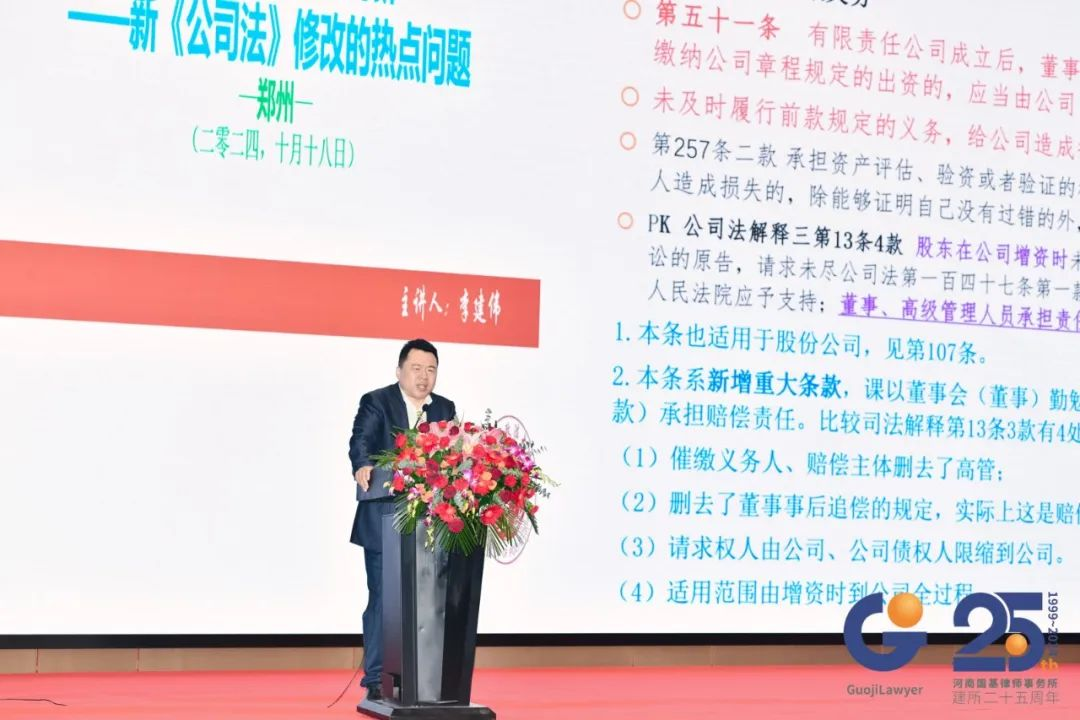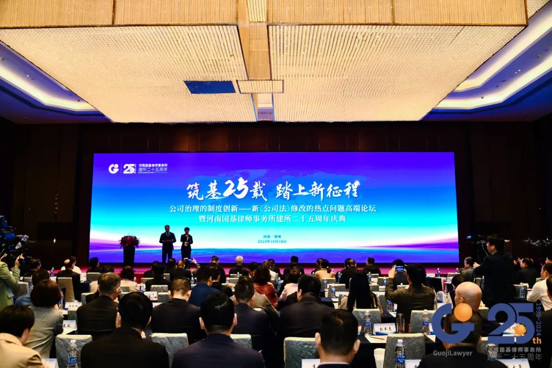筑基廿五载,踏上新征程。2024年10月18日,公司治理的制度创新——新《公司法》修改的热点问题高端论坛暨河南国基律师事务所建所二十五周年庆典在郑州美盛喜来登酒店举行。