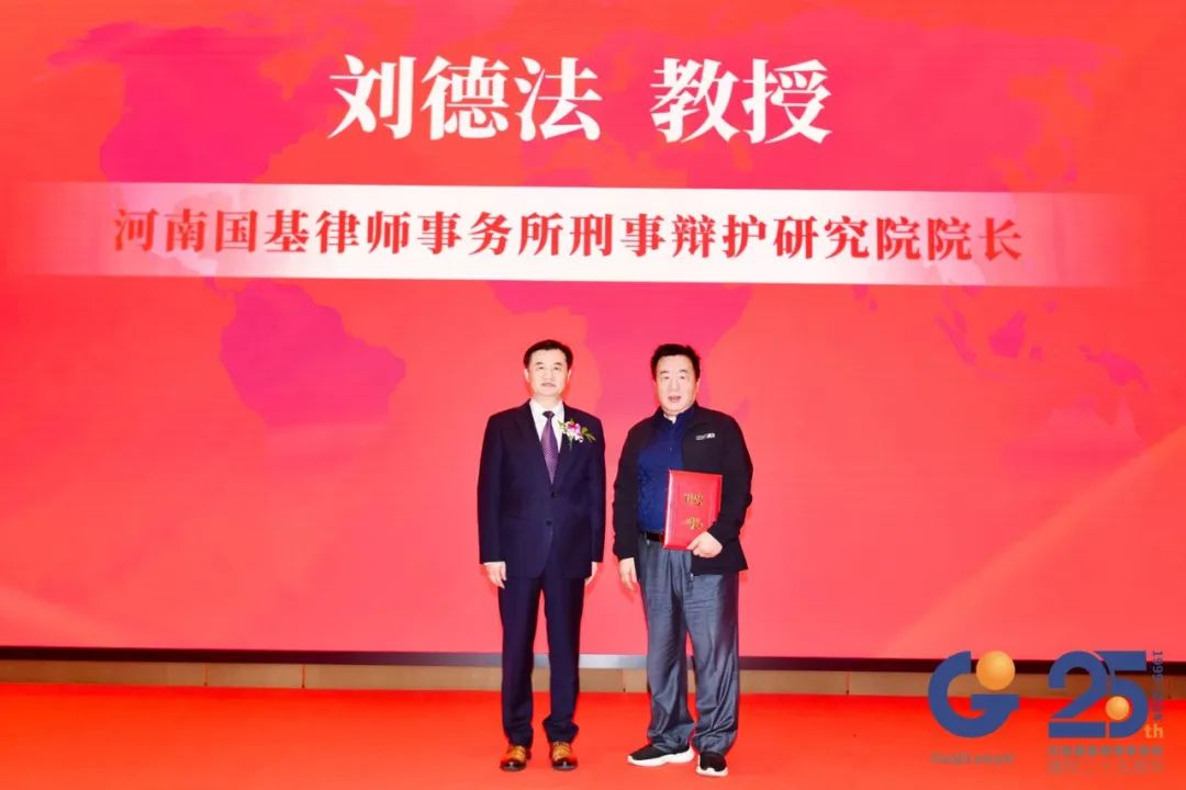 刑事业务一直是河南国基律师事务所的优势业务领域,刑事专业团队设立了刑事一部、二部、三部及企业合规管理部。为了进一步提升国基刑辩品牌,扩大国基刑辩影响力,挖掘国基刑辩潜力,在建所二十五周年之际,律所成立了刑事辩护研究院,邀请武汉大学刑法学博士、郑州大学法学院教授、博士生导师、河南省特聘教授刘德法担任研究院首任院长。河南国基律师事务所主任李晴川为刘德法教授颁发了聘书。