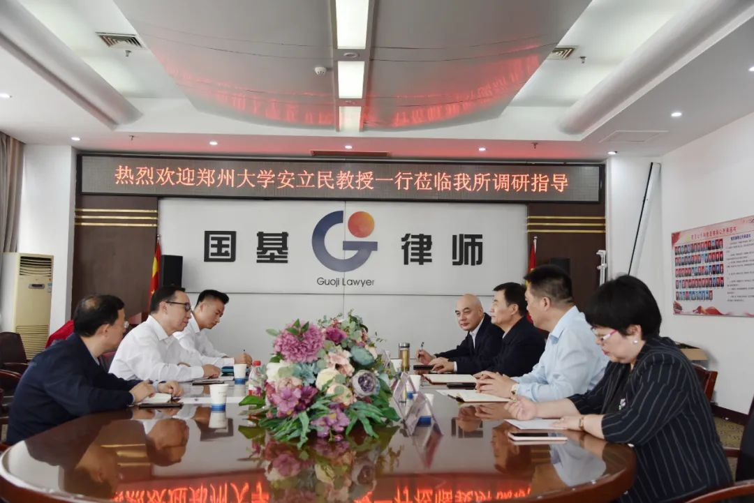 4月20日上午,郑州大学法学院、国际学院原党委书记安立民教授、河南财经政法大学教授、河南林起律师事务所专家顾问张安毅、河南林起律师事务所主任姜拴胜一行莅临河南国基律师事务所进行考察调研。国基所主任李晴川,高级合伙人、副主任魏杭周,高级合伙人、郑州航空港区业务团队负责人王术军,合伙人、婚姻家庭与财富传承事务部主任刘辉等参加此次调研活动。