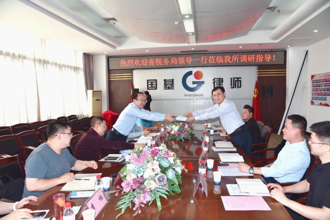 李晴川主任对蔡处长一行的到来表示热烈欢迎!对于税务部门对律师行业的关心支持表示衷心的感谢!李主任对近年来律师行业的发展概况、国基所的发展历程以及依法纳税情况进行简单介绍。围绕在今年两会上的提案,他提出民营企业对全国税收做出了巨大贡献,呼吁在经济高速增长出现拐点的当下,税务部门要对相关税费进行减、免、缓、返,“放水养鱼”、“涵养税源”,综合考虑税收征收及优惠政策的执行以支持民营经济的发展,不断优化营商环境。