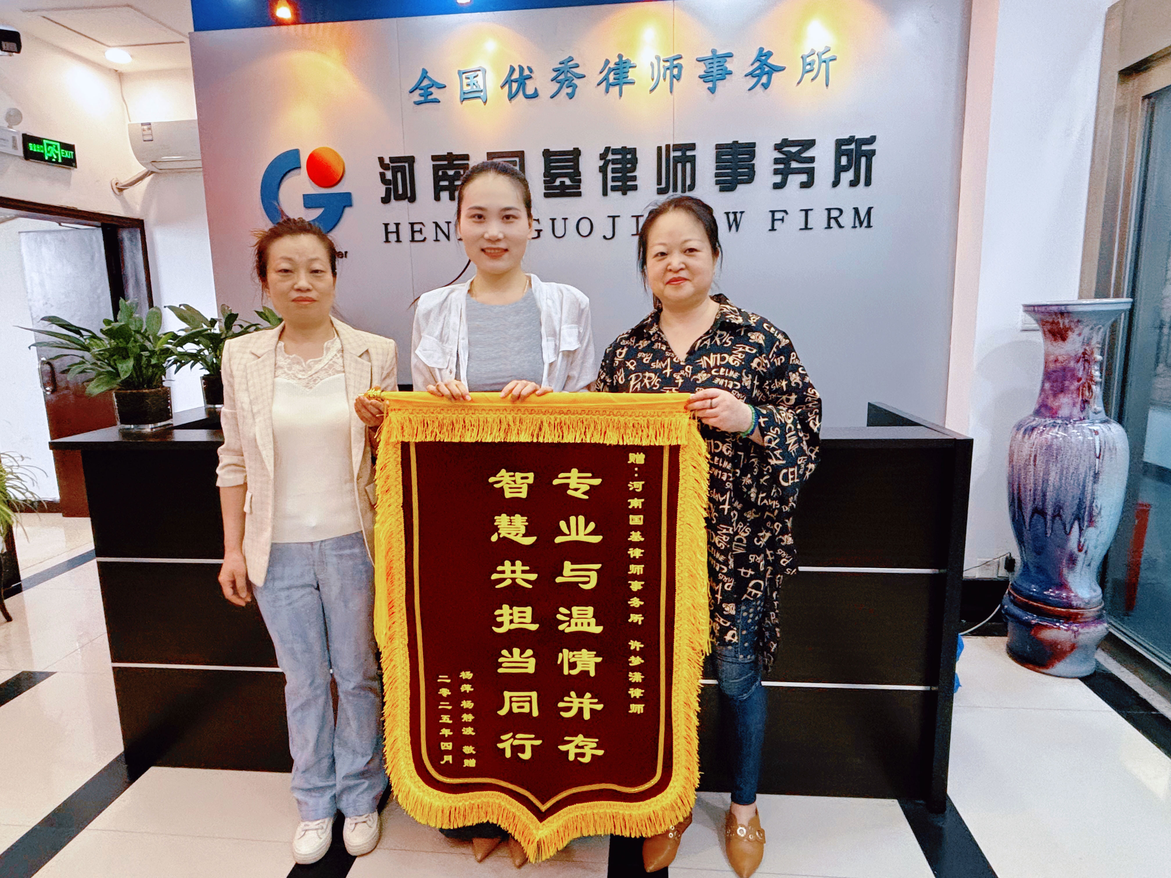 11、4月14日,河南国基律师事务所婚姻家事与财富传承部姚艳君、薛婷婷律师收到委托人送来的锦旗。姚律师、薛律师办理的一起民间借贷案件,通过收集案件证据、制定调解方案,于庭审前促成双方达成调解协议。案件进入执行阶段后,通过查找财产线索,与当事人、法官多轮沟通,最终达成执行和解。委托人专程送来锦旗表示感谢。