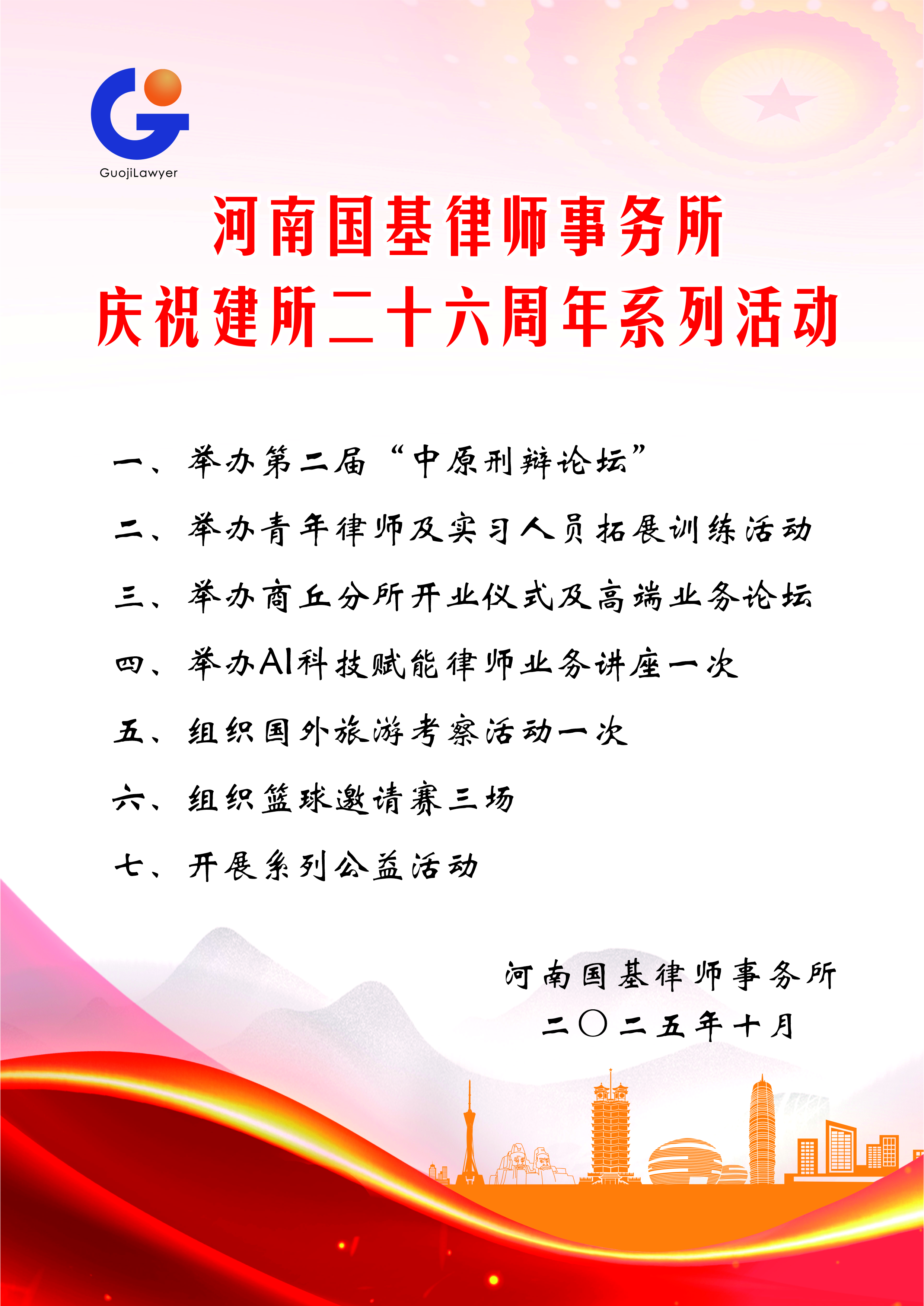 3、10月10日,河南国基律师事务所对庆祝建所二十六周年系列活动进行了安排部署。