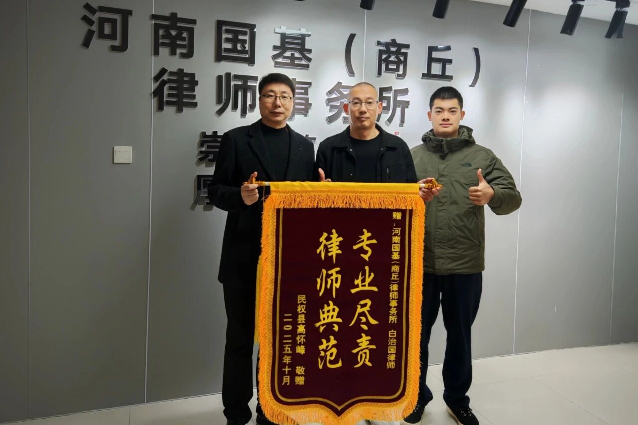 20、10月31日,委托人为河南国基(商丘)律师事务所白治国律师送来锦旗。委托人所涉一起合伙协议纠纷案,一审败诉,二审委托白治国律师代理。白律师认真研判案情,厘清案件事实,突破法律适用难点,最终使案件二审改判,维护了委托人的合法权益,彰显了公平正义,委托人专程送来锦旗表示感谢!