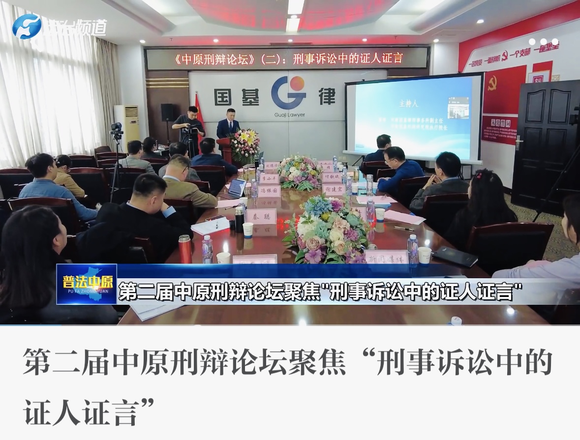 4、11月9日,河南电视台法治频道聚焦河南国基律师事务所刑事辩护研究院第二期“中原刑辩论坛”,拍摄制作的节目《刑事诉讼中的证人证言》在法治频道播出。