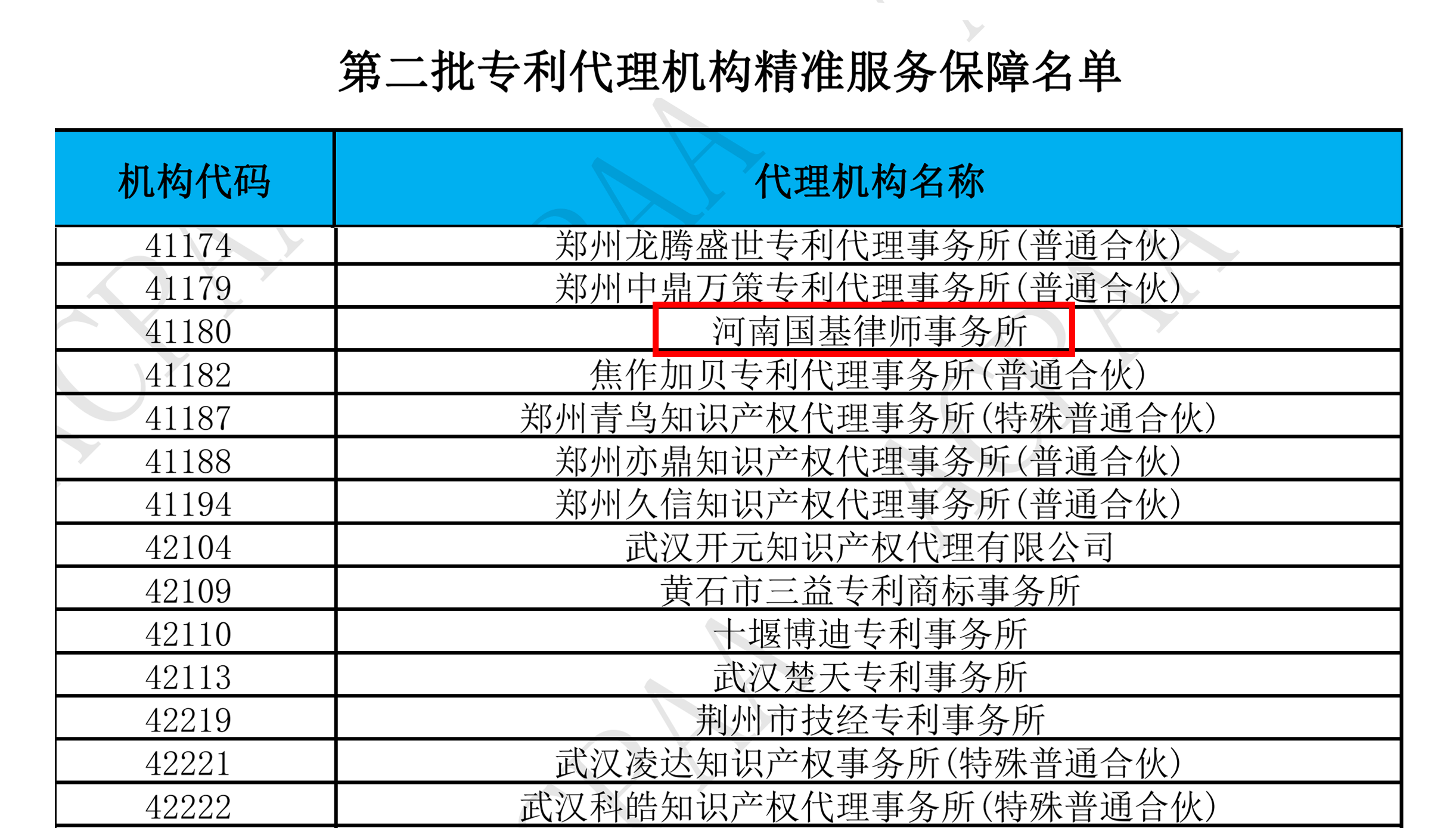 7、11月12日,河南国基律师事务所作为中华全国专利代理师协会的会员单位,成功入选“第二批专利代理机构精准服务保障名单”。这标志着国基律所在知识产权服务领域的专业能力与综合实力,获得了行业的充分认可。