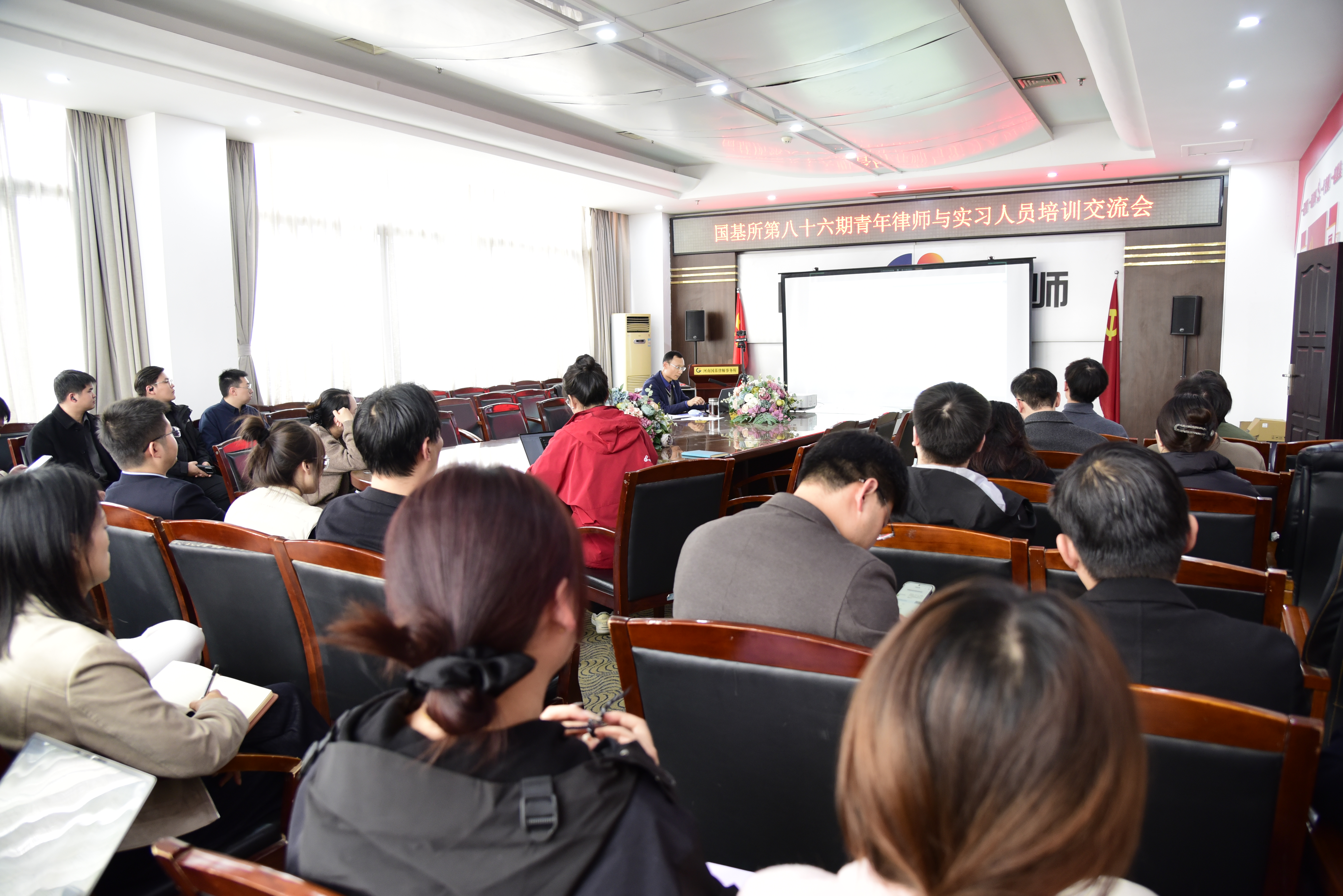 9、11月14日,河南国基律师事务所线上线下同步举行第86期青年律师与实习人员培训交流会,由律所民事一部副主任许水征作《追加公司股东实务探析》主题讲座。