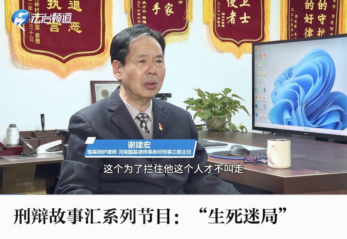 14、11月16日,河南电视台法治频道采访报道河南国基律师事务所刑事三部主任谢建宏律师办案纪实,拍摄制作的节目《刑辩故事汇:生死迷局》在法治频道播出。