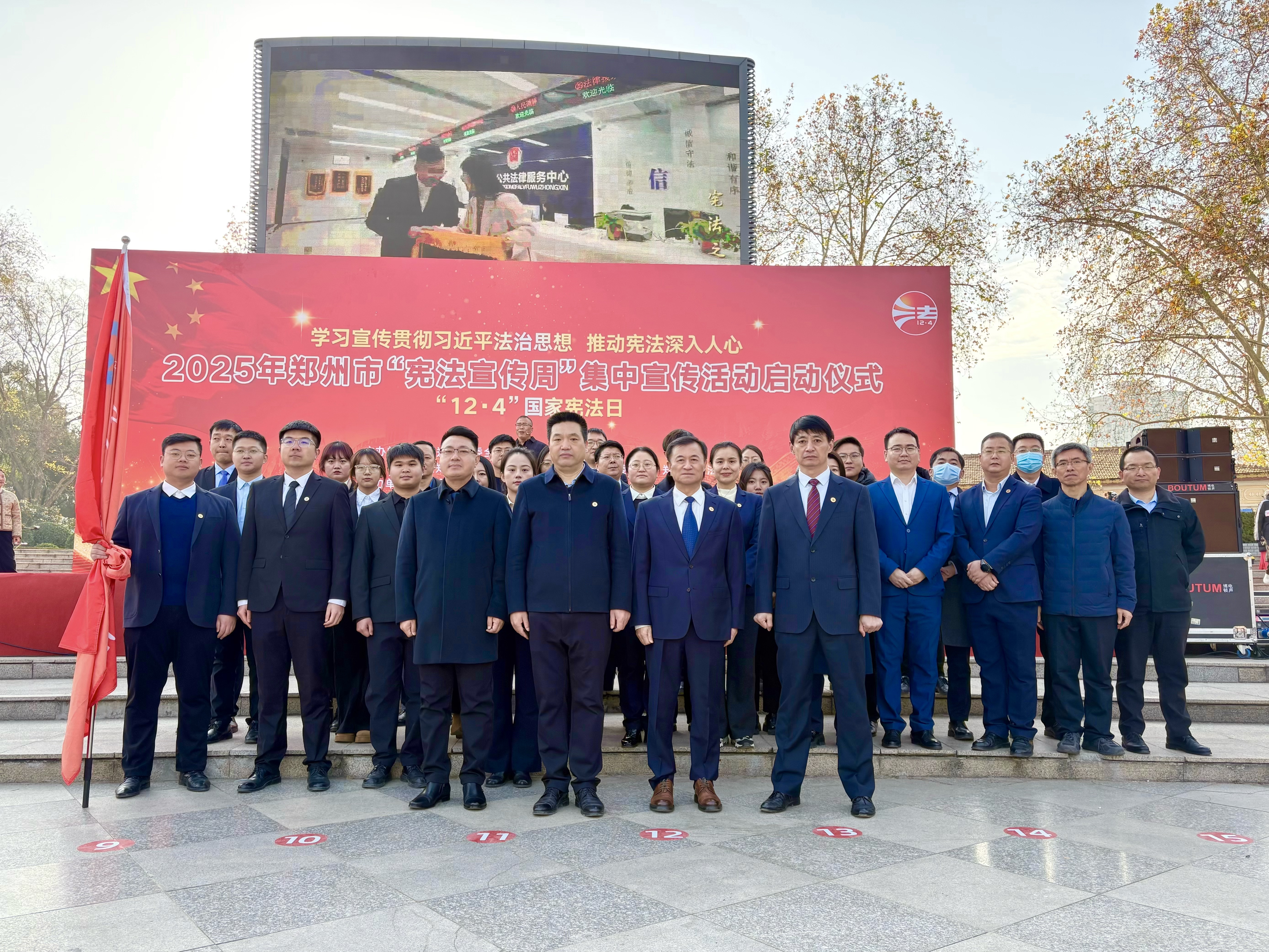 12月4日,2025年郑州市“宪法宣传周”集中宣传活动启动仪式暨“12·4”国家宪法日活动在紫荆山广场举行。河南国基律师事务所主任李晴川,高级合伙人、副主任魏杭周,高级合伙人充建涛及40余名律师参加活动。