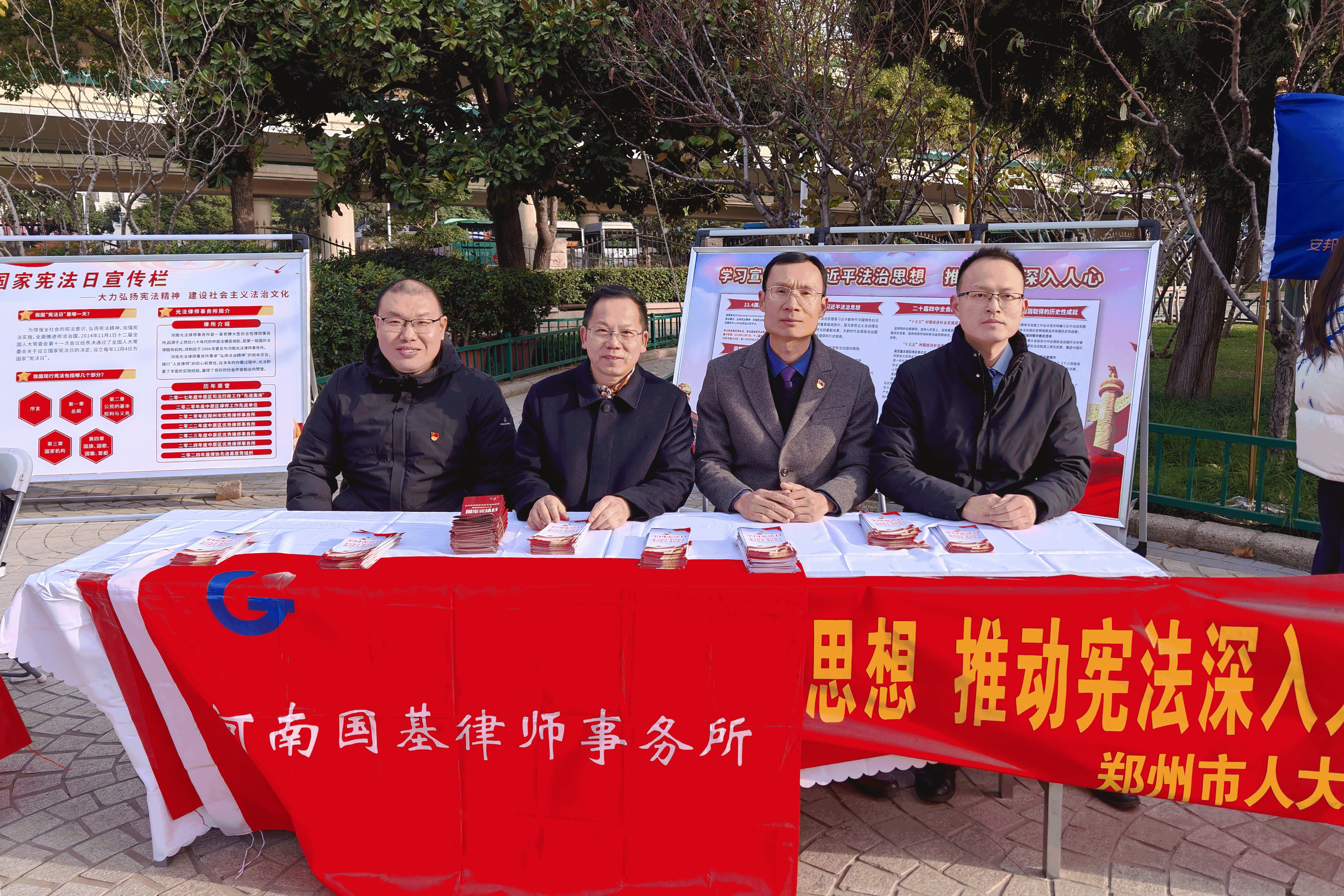 1、12月2日—4日,在第十二个国家宪法日及2025年郑州市“宪法宣传周”活动期间,河南国基律师事务所组织40余名律师前往郑州紫荆山广场参加“宪法宣传周”活动启动仪式。通过设置法律咨询台、发放宪法读本、现场答疑等形式,向市民普及宪法知识。