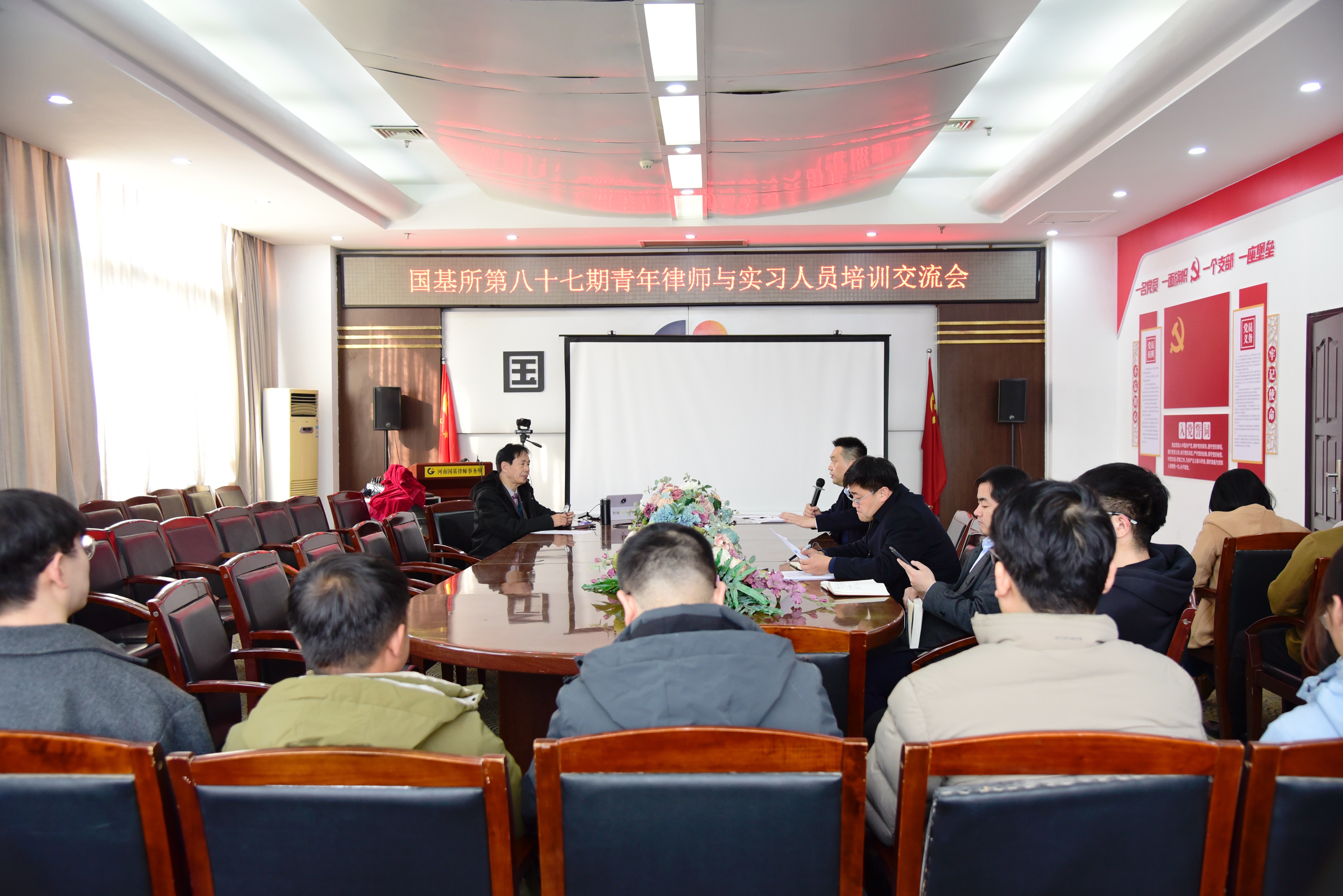 2、12月5日,河南国基律师事务所线上线下同步举行第87期青年律师与实习人员培训交流会,由律所刑事三部主任、资深律师谢建宏作《刑辩律师的职业特性随谈与体会》主题分享,高级合伙人、副主任魏杭周及部分青年律师与实习人员现场参会。