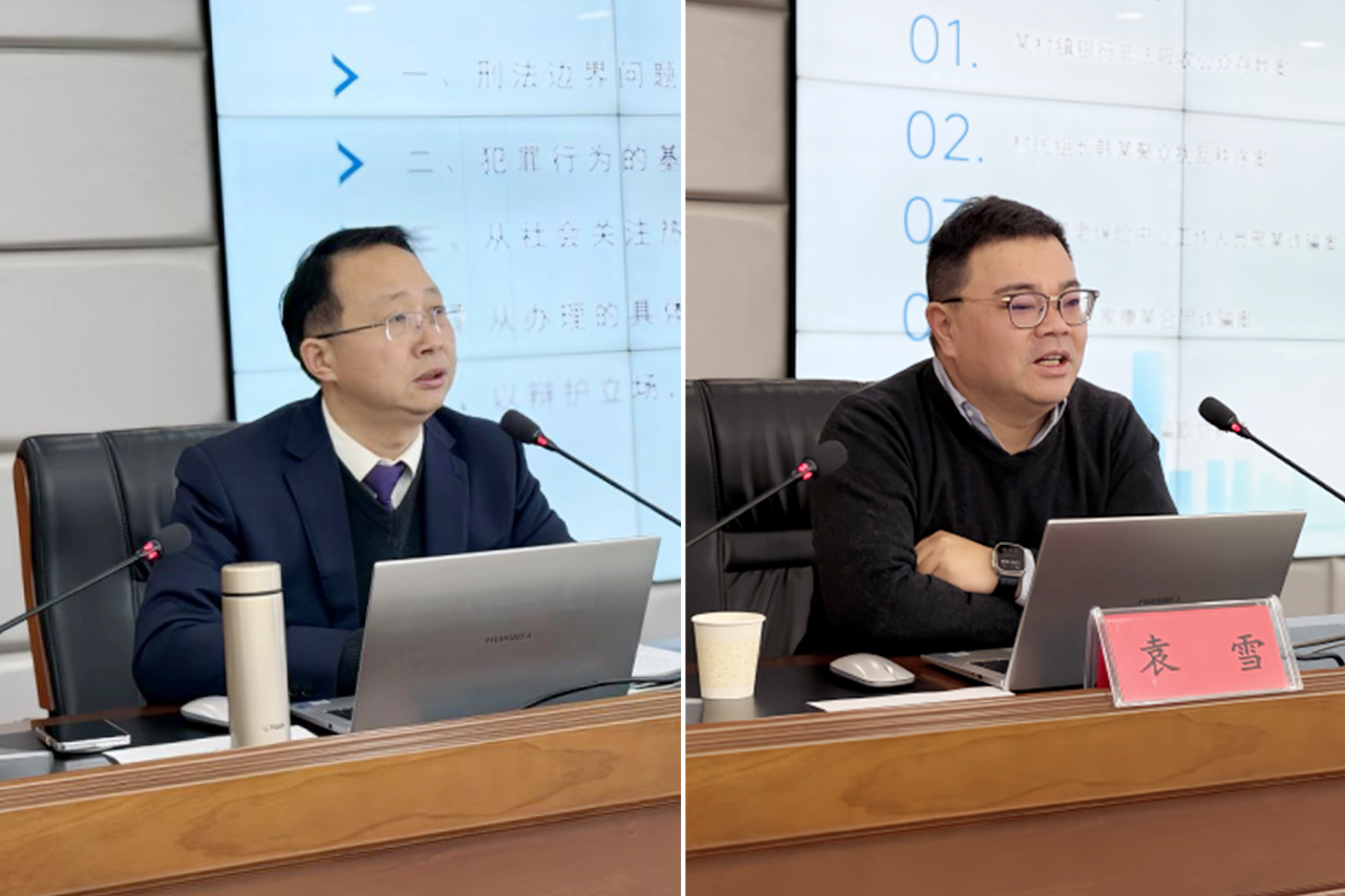 5、12月7日,驻马店市律师行业2025年党建暨业务培训班在驻马店市司法局举行,特邀河南国基律师事务所刑事一部主任袁雪博士、刑事二部主任付钦斌律师担任主讲嘉宾。两位律师分别以《以案说法:漫谈有效辩护》《刑法适用中的刑法边界问题——通过案例解析“罪与非罪”》为题进行授课。