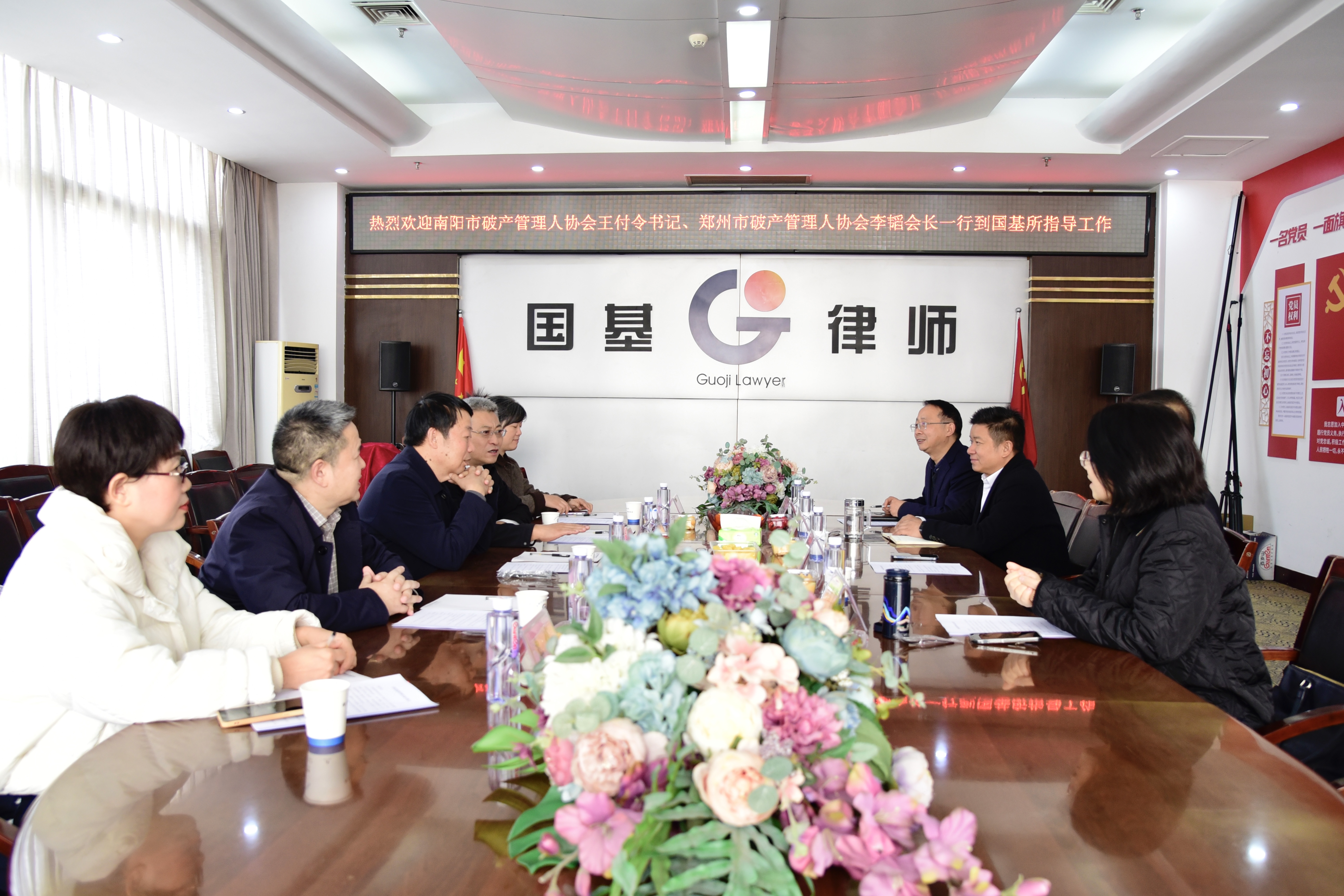 8、12月10日,河南省南阳市破产管理人协会党支部书记王付令、郑州市破产管理人协会会长李韬一行5人到访河南国基律师事务所交流工作。国基律所高级合伙人徐德鹏、破产重整部负责人张淑霞陪同调研,并就破产重整专业化建设等进行经验交流。
