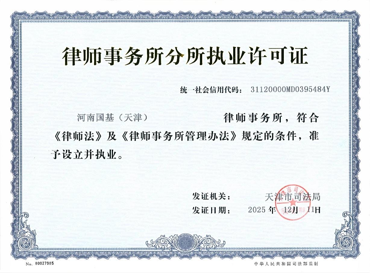 9、12月11日,河南国基(天津)律师事务所经天津市司法局批准成立。标志着国基律所“立足河南,辐射全国”的战略布局再添重要节点,有效实现服务京津冀地区经济社会发展的执业目标。