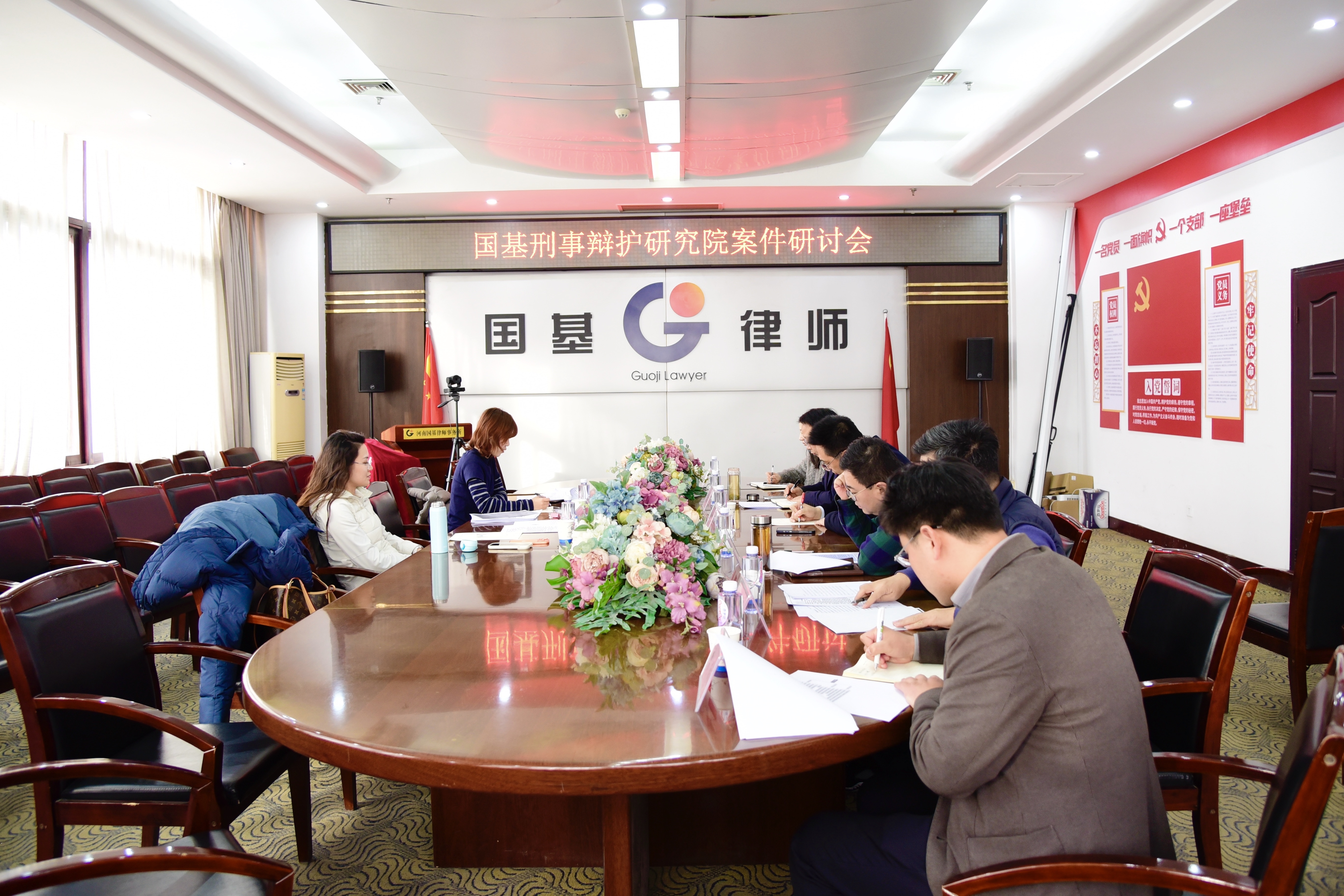 20、12月23日,河南国基律师事务所刑事辩护研究院举办案件研讨会,律所高级合伙人、副主任魏杭周,刑事一部主任袁雪,刑事二部主任付钦斌,刑事一部副主任杨晓楠及部分青年律师与实习人员参加本次研讨。