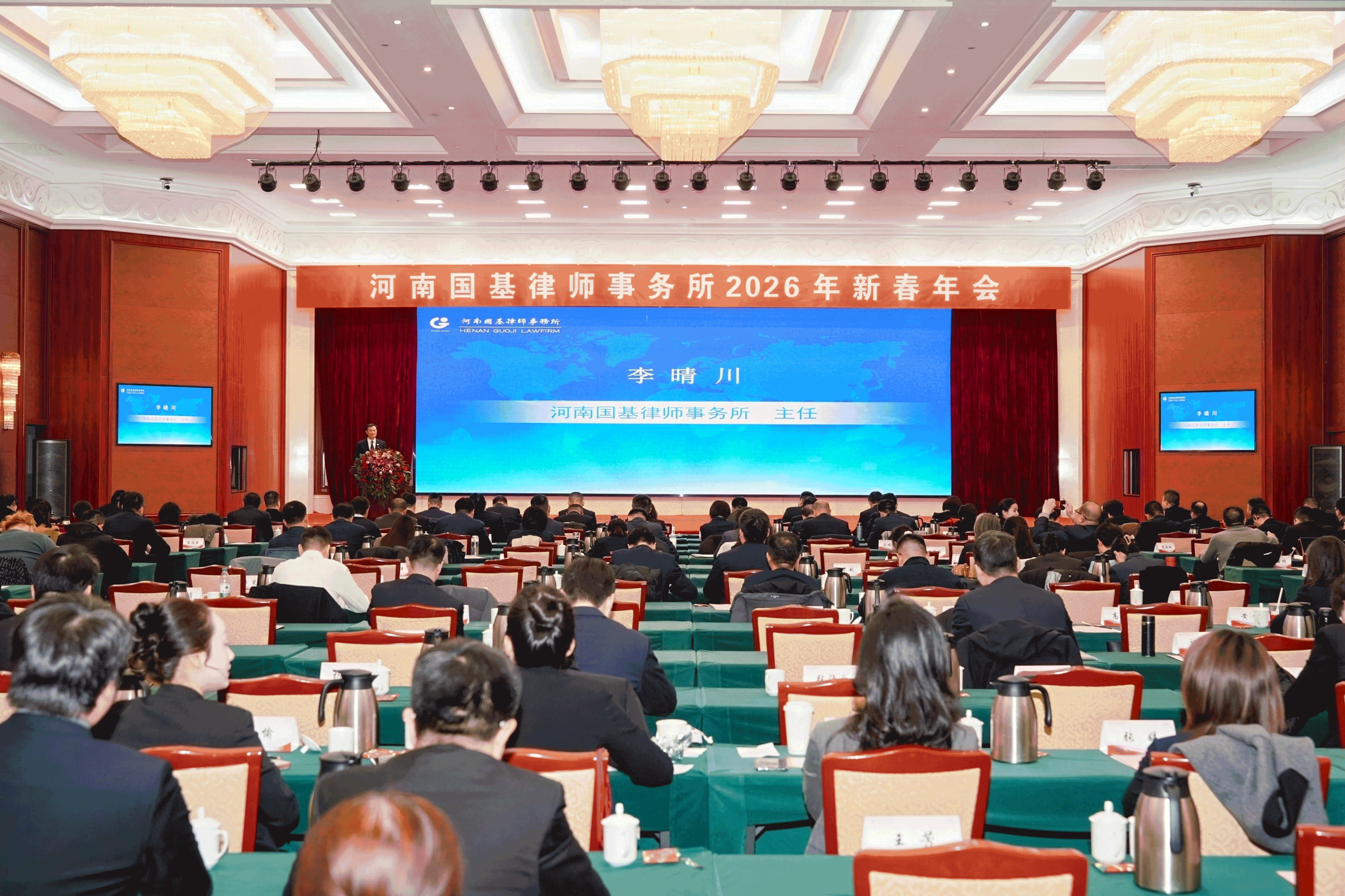 3、2月9日,河南国基律师事务所2026年新春年会在郑州紫荆山宾馆举行。会上,部分专业部主任、分所及工作部门负责人作述职报告,李晴川主任全面总结律所2025年度工作,并对2026年工作进行安排部署;会议表彰2025年度先进集体及先进个人,举行新执业律师颁证及宣誓仪式,并开展了2026年迎新春文艺汇演。本次年会总结成绩、查找不足,为律所2026年高质量发展明确方向、凝聚合力。