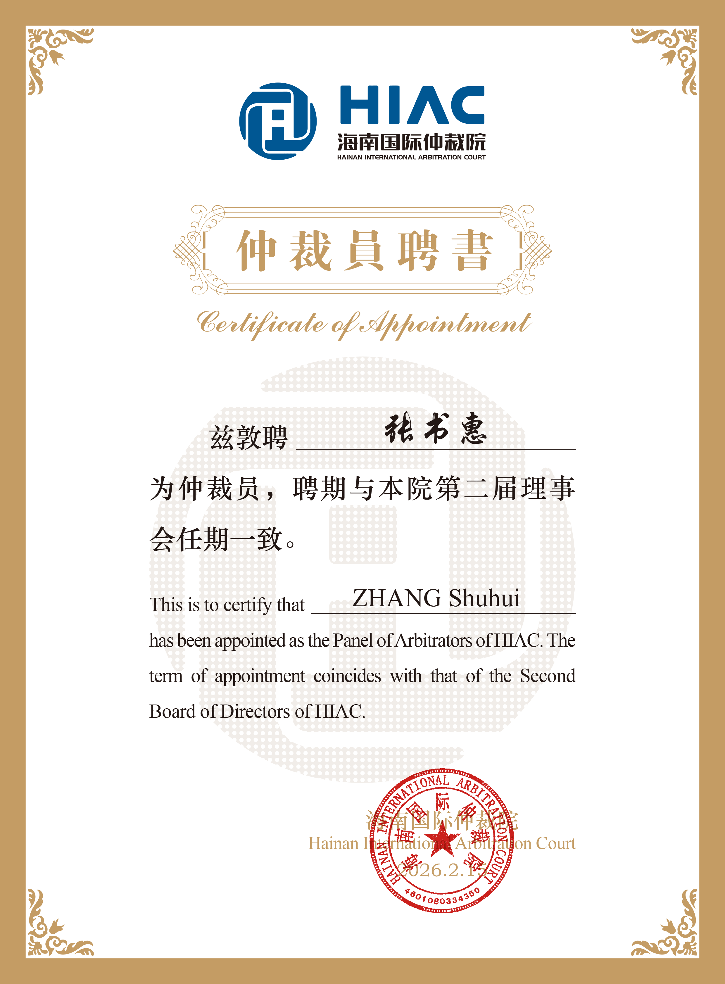 10、2月15日,河南国基(海口)律师事务所主任张书惠被海南国际仲裁院聘任为新一届仲裁员。张书惠主任自2024年起担任海南国际仲裁院第一届仲裁员,此次换届续聘后,将认真履职,积极推动海南仲裁事业不断发展。