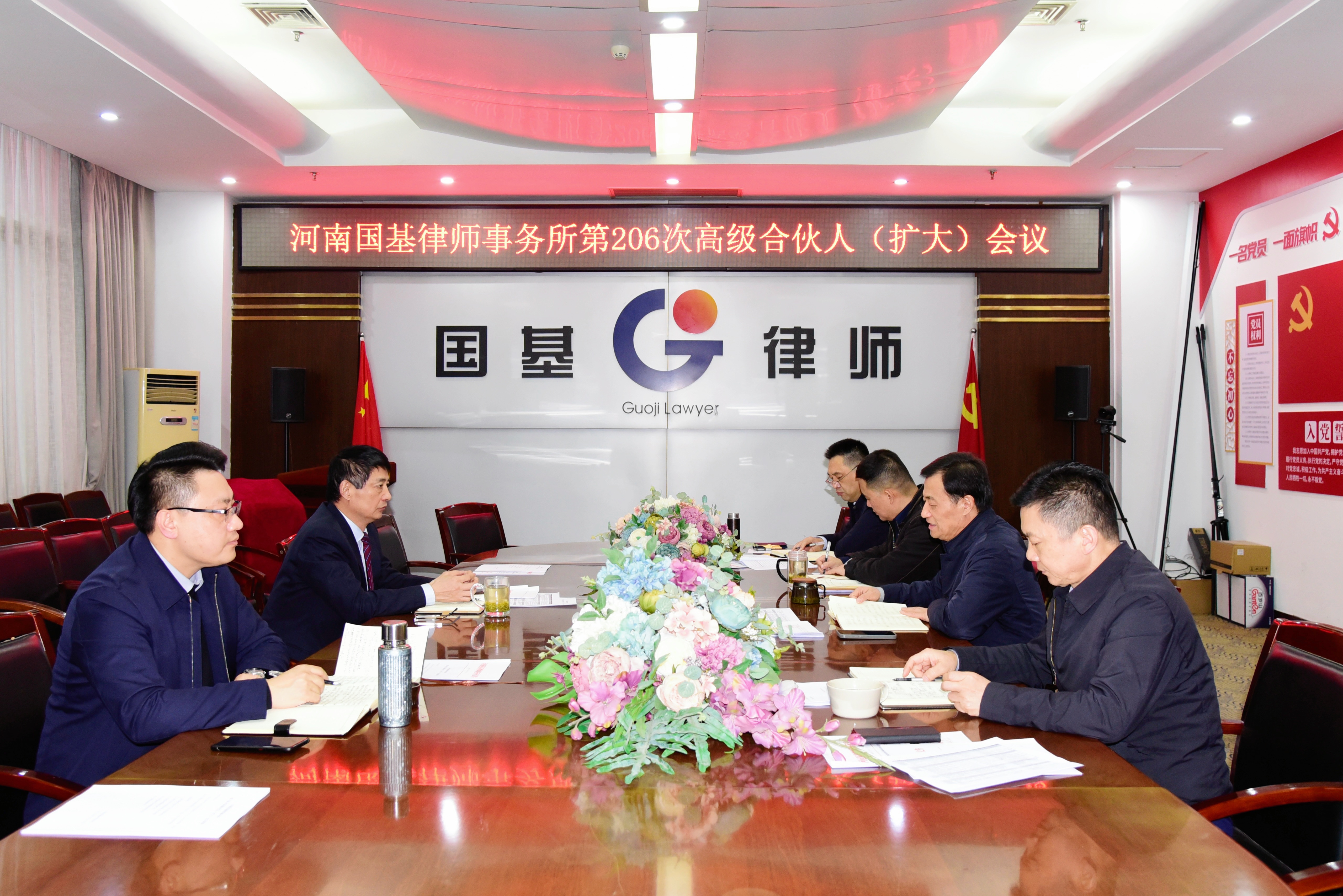 11、2月28日,河南国基律师事务所召开第206次高级合伙人(扩大)会议,会议研究部署了律所2026年工作计划落实、业务拓展方向及领域,明确了近期工作安排,并研究确定了多项管理制度的出台,为新一年工作开好局、起好步奠定良好基础。