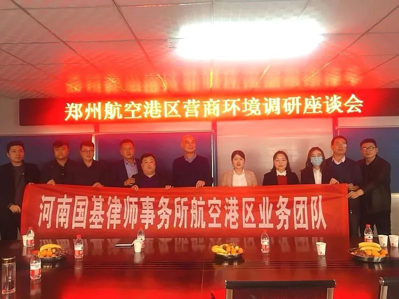 河南国基律师事务所航空港区业务团队具体承担此次走访调研工作,并将根据调研情况形成《调研报告》,起草《郑州航空港经济综合实验区优化营商环境实施细则(草稿)》,为优化港区营商环境作出贡献。