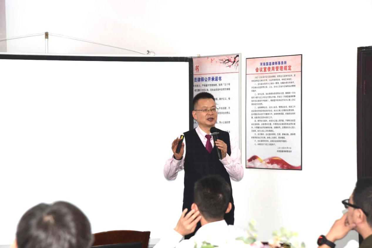 讲座现场,国基所学术交流中心座无虚席。河南国基律师事务所副主任童靖、刑事部主任袁雪、副主任付钦斌、部分律师及实习人员参加了讲座。同时,还吸引了兄弟律所同仁前来聆听。
