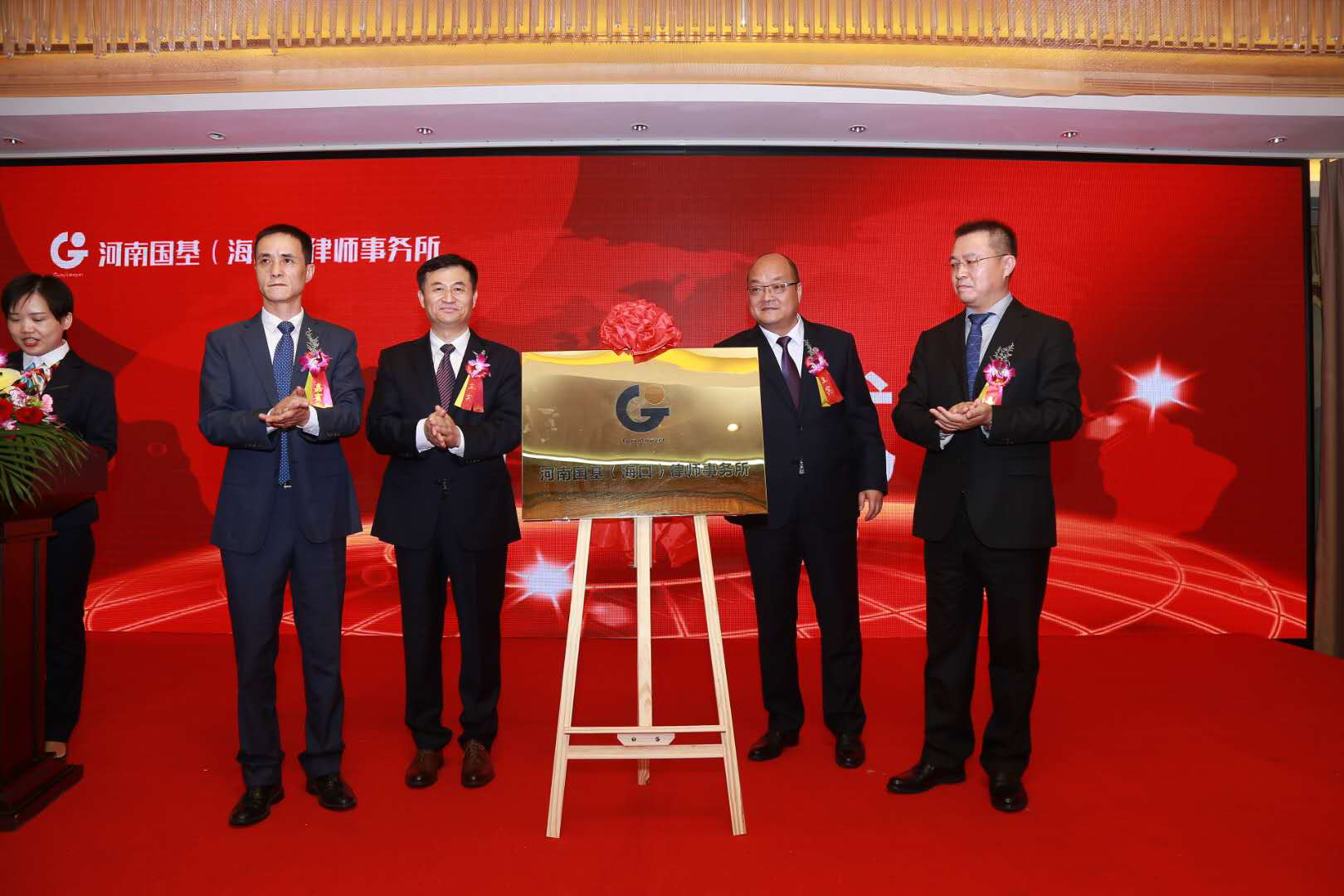 上午10点整,海南省律师协会会长张晓辉、河南省律师协会副会长冯彦辉,河南国基律师事务所主任李晴川、河南国基(海口)律师事务所主任李钢共同为河南国基(海口)律师事务所揭牌。