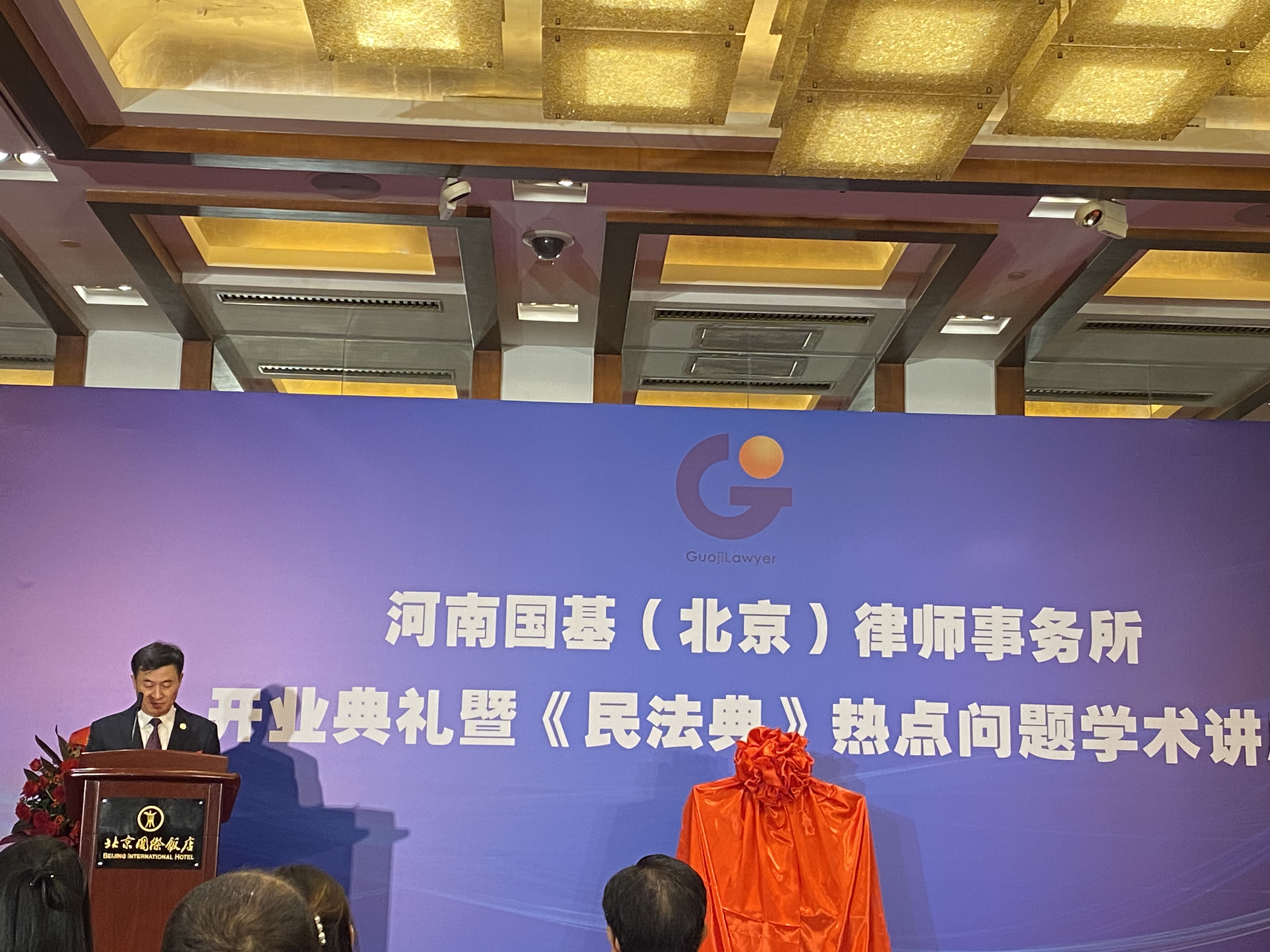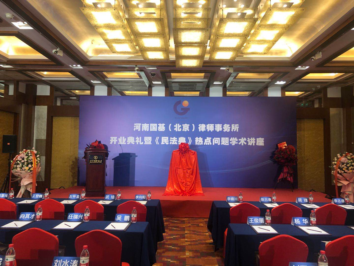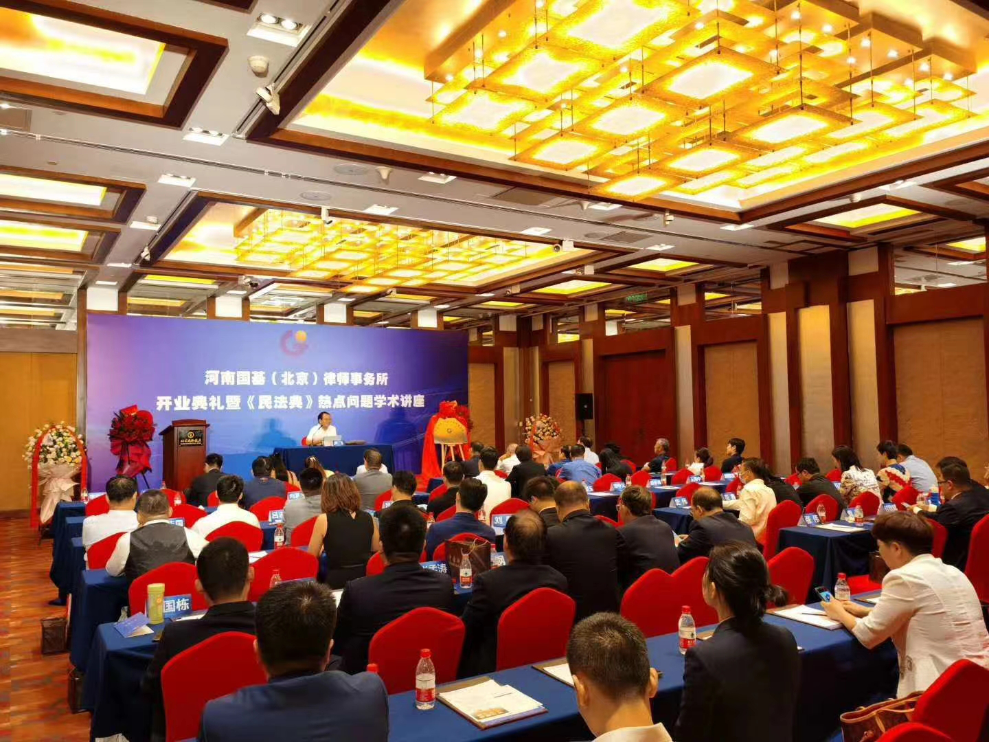 2020年9月19日,时值国庆、中秋“双节”前夕,河南国基(北京)律师事务所开业典礼暨《民法典》热点问题学术讲座在北京国际饭店会议中心举行。开业典礼特别邀请了北京市律师协会,河南省律师协会,国内部分高校,北京市律师同行及企业单位嘉宾共80余人出席。
