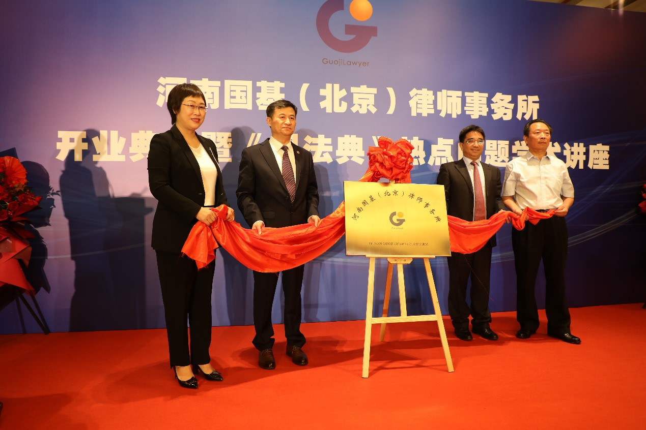 上午10点整,最高人民法院办公厅原领导周德伟、河南省律师协会副会长王登巍、河南国基律师事务所主任李晴川、北京分所主任王俊丽主任共同为河南国基(北京)律师事务所揭牌。