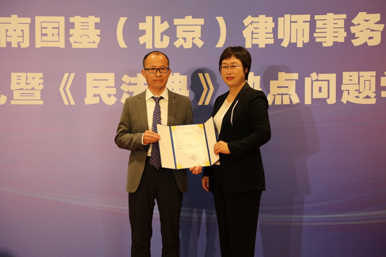 北京分所主任王俊丽为任瑞兴教授颁发高级顾问聘书